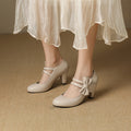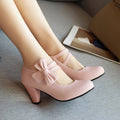 [Fashion Pumps] Fashion PU Leather Round Toe Pumps Kitten Heels | Bowknot Ankle Straps Women's Footwear, Chunky Shoes, Dance Work Dress