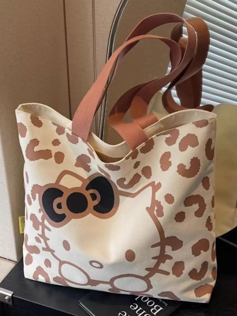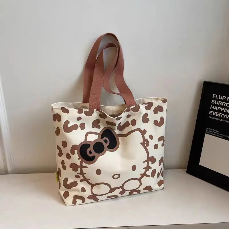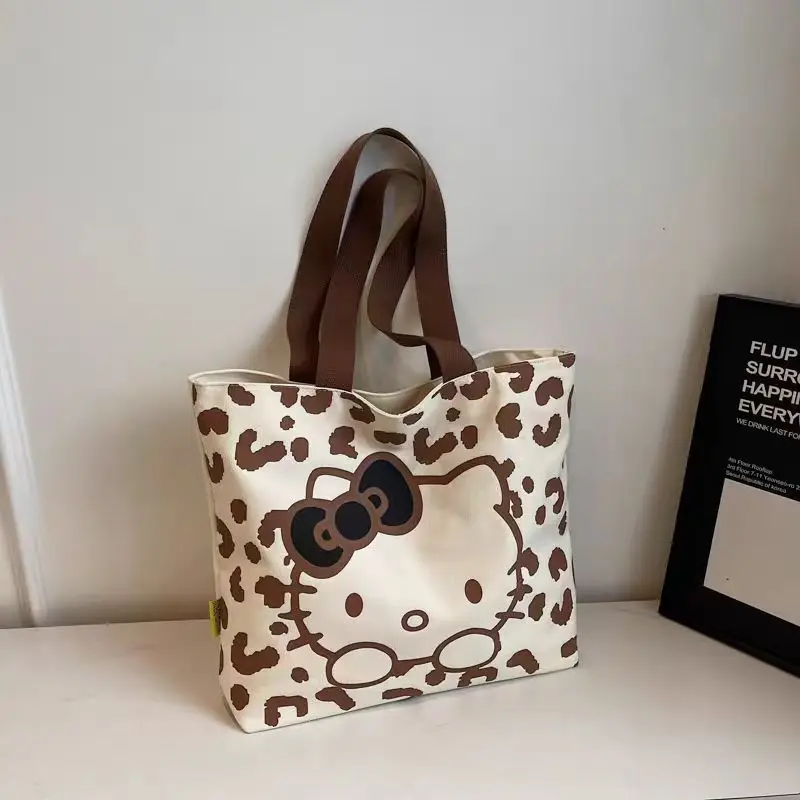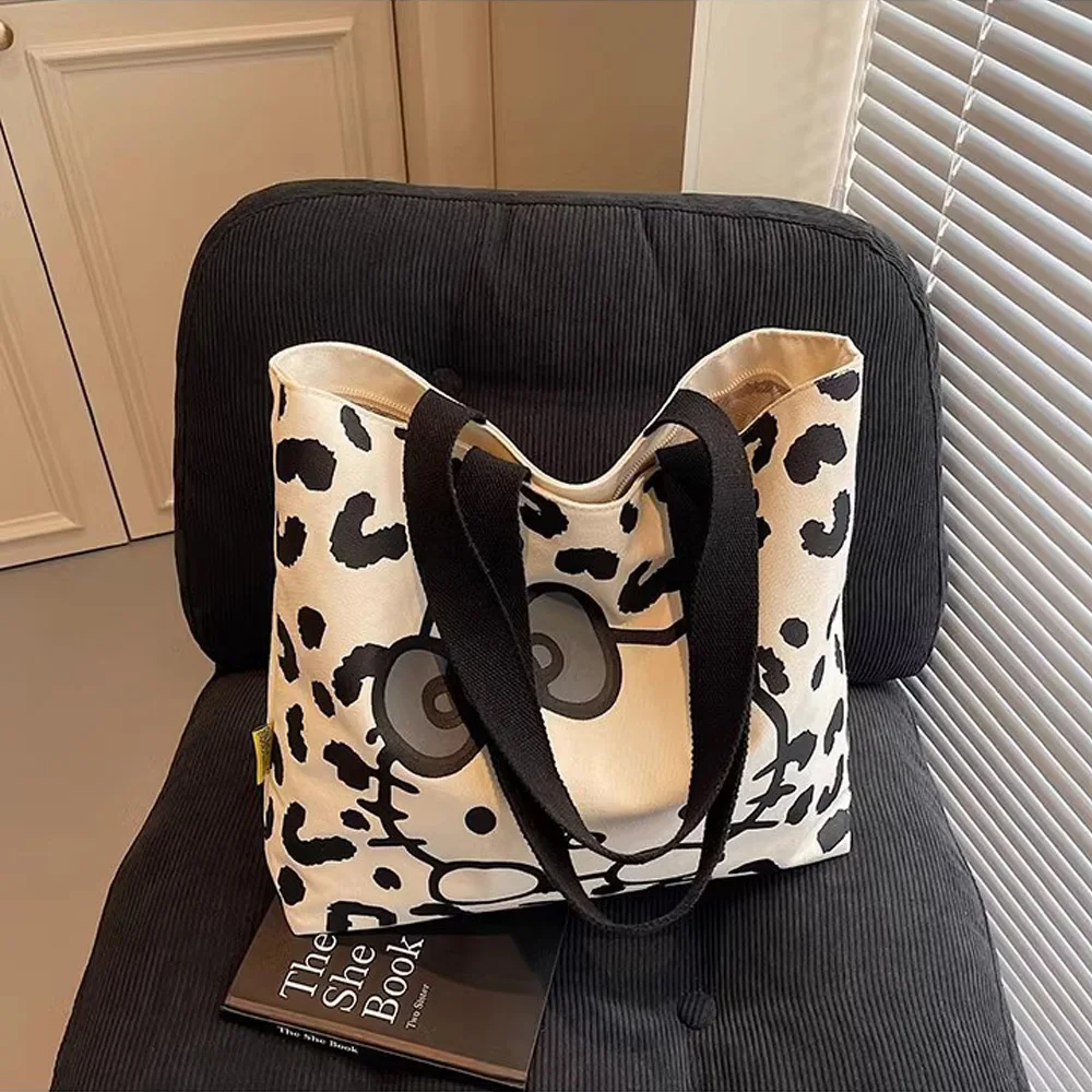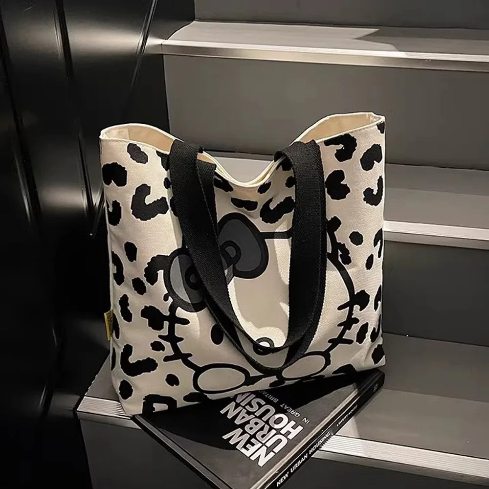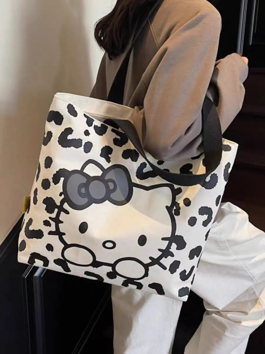 Fashion Retro Hello Kitty Canvas Shoulder Bag Charm Women's Large Capacity Daily Commuting Casual Handbag Girls Birthday Gifts