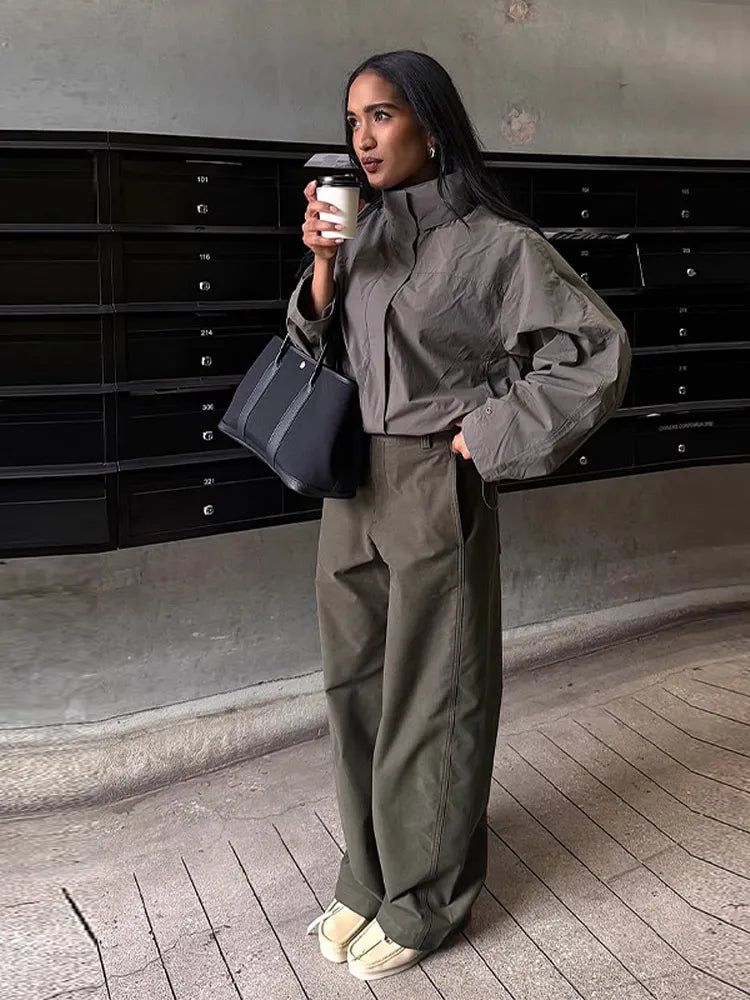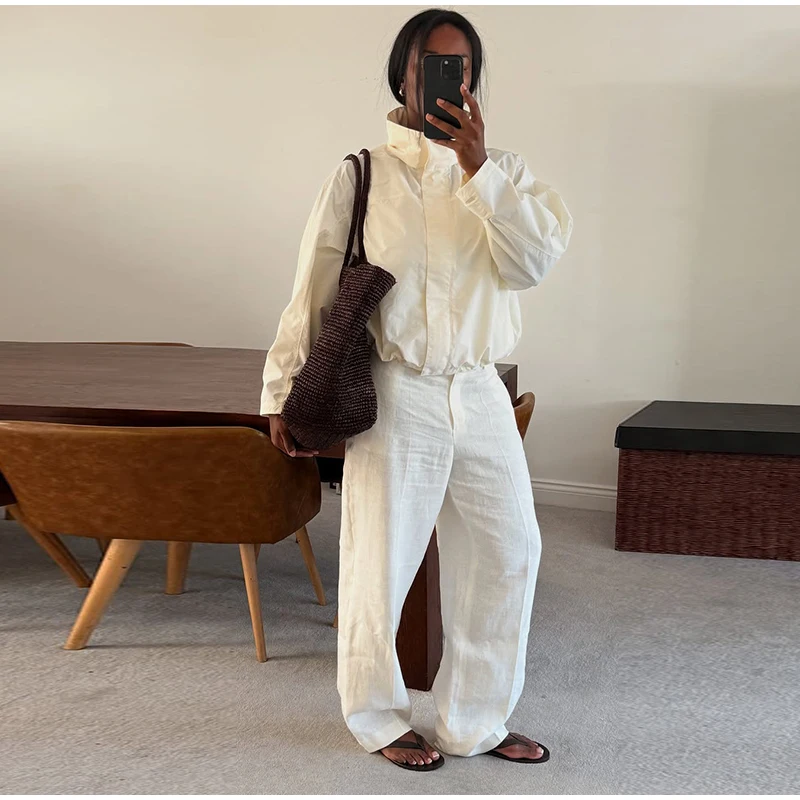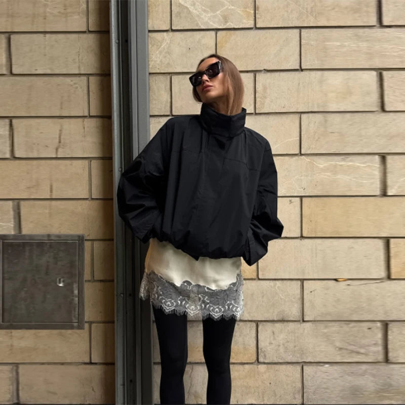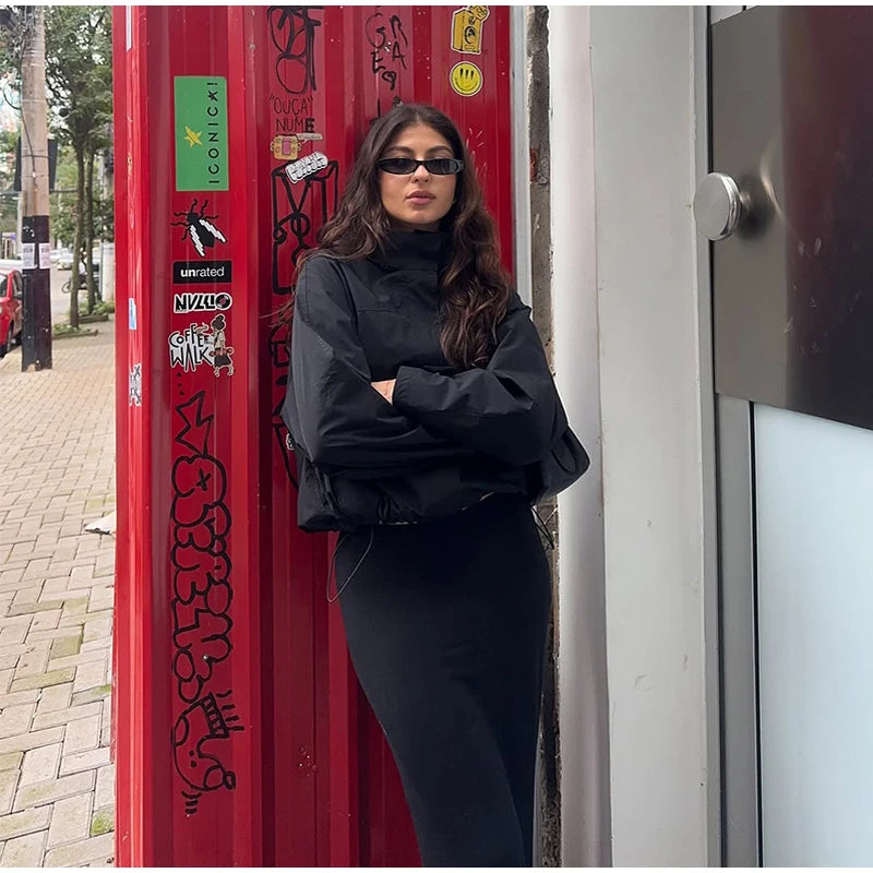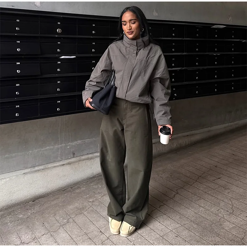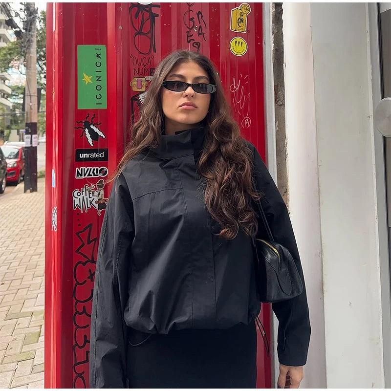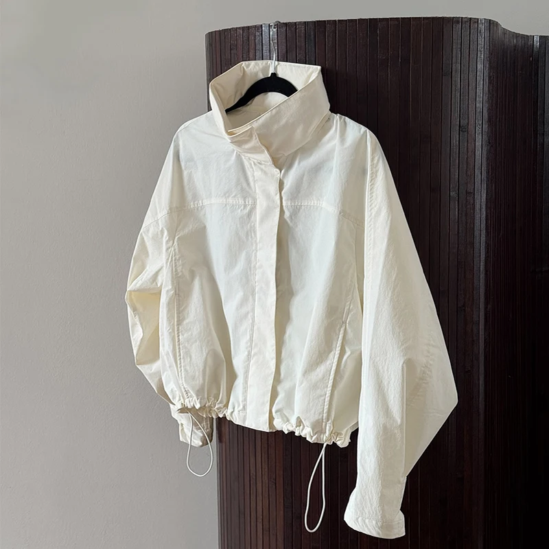 Fashion Stand Collar Women's Jacket Long Sleeve Drawstring Waist-Closed Lady Jackets 2025 Autumn Winter Casual Female Streetwear