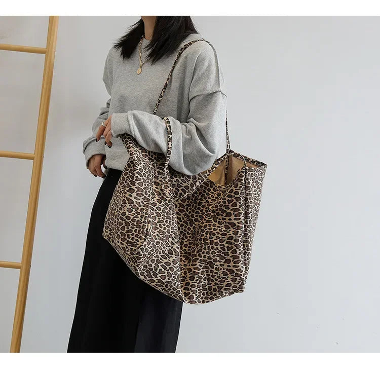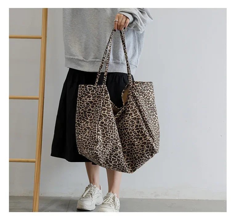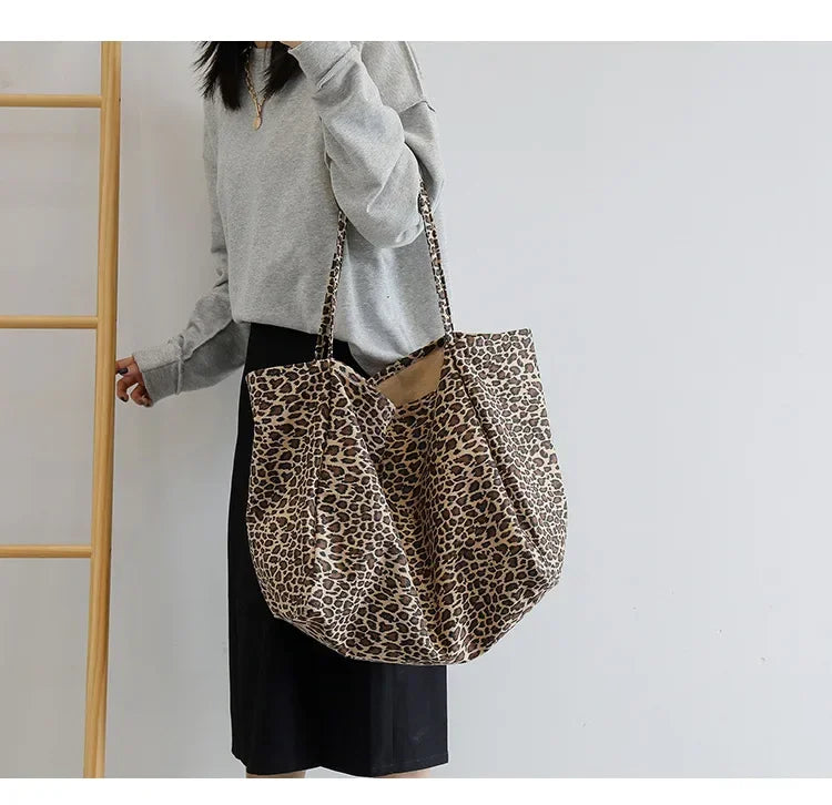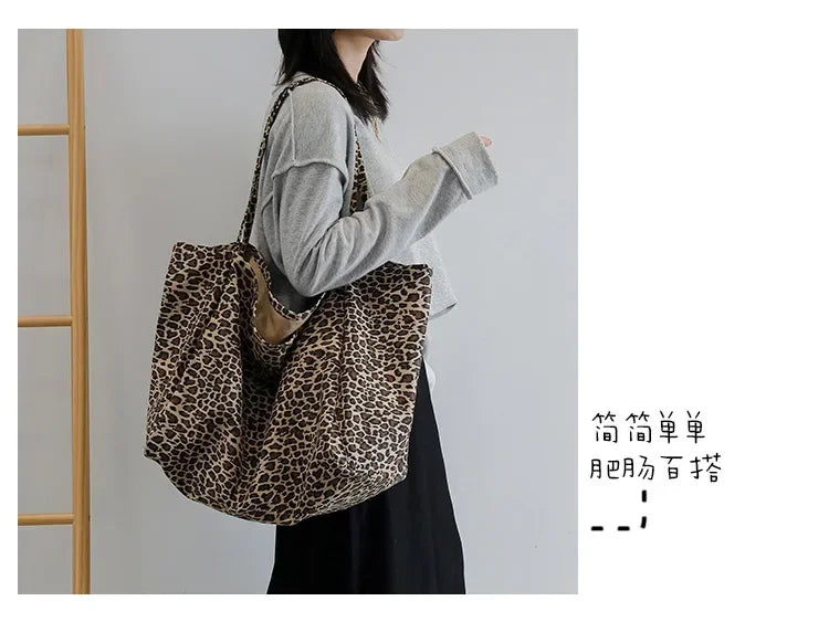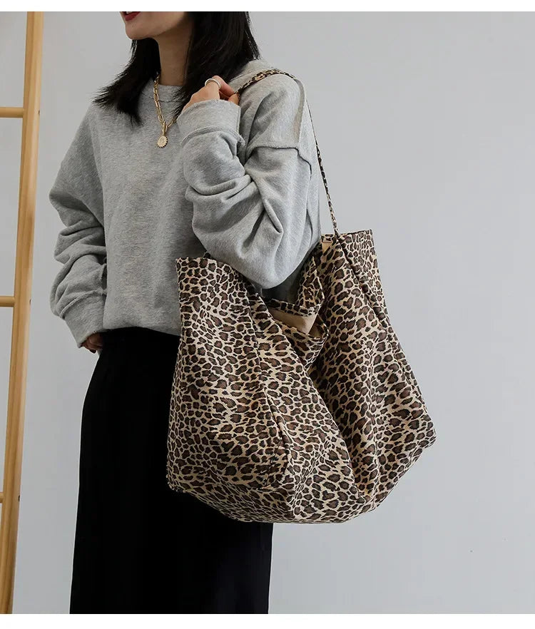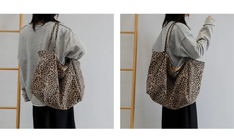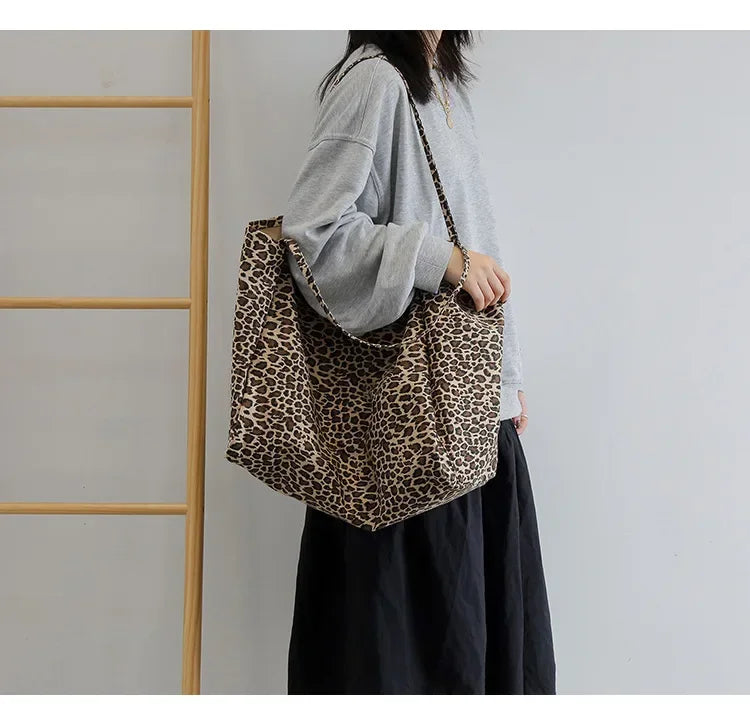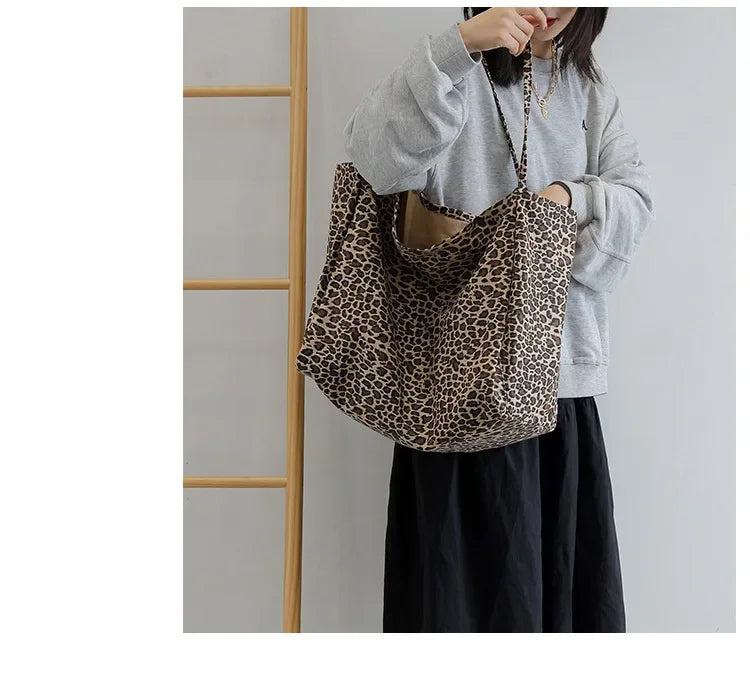 Fashion Women's Shopping Handbag Leopard Pattern Crossbody Bag Large Capacity Shoulder Bag Simple Canvas Female Bags Сумка