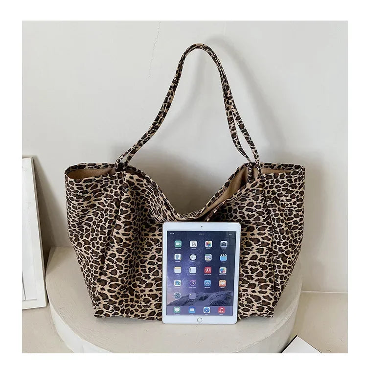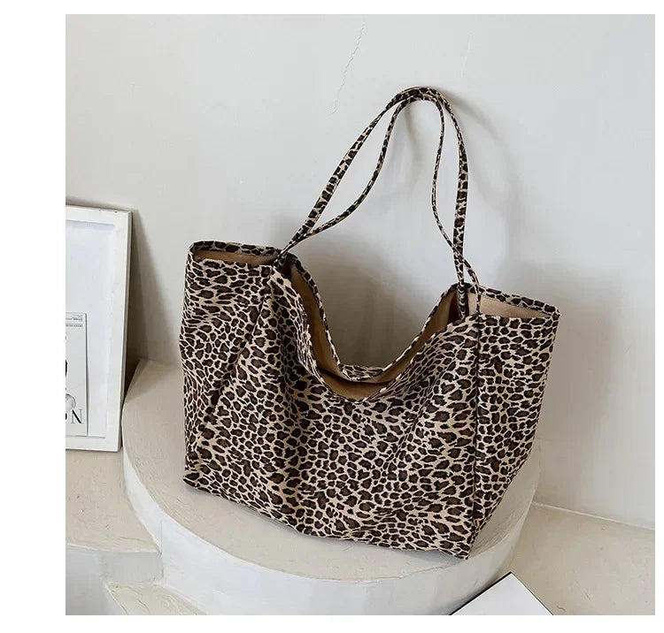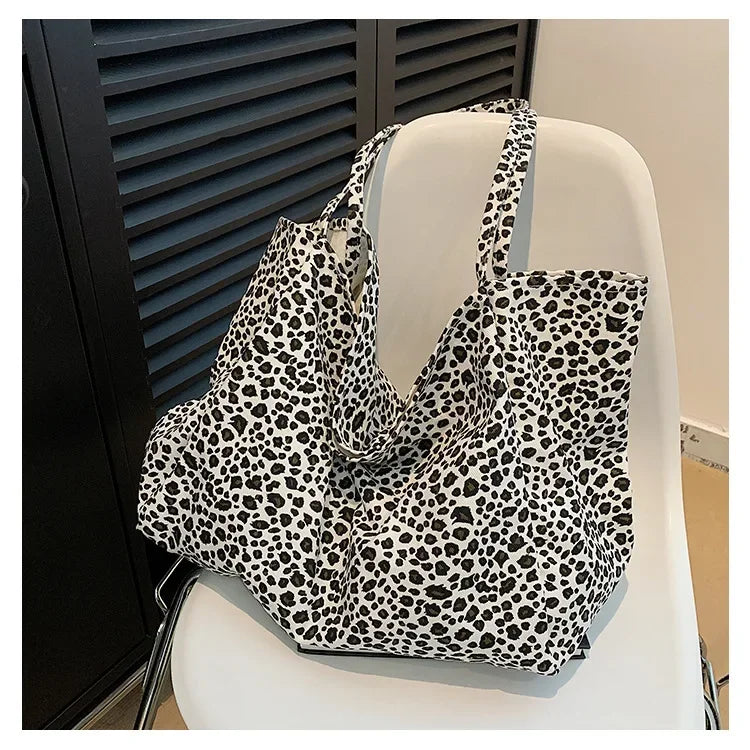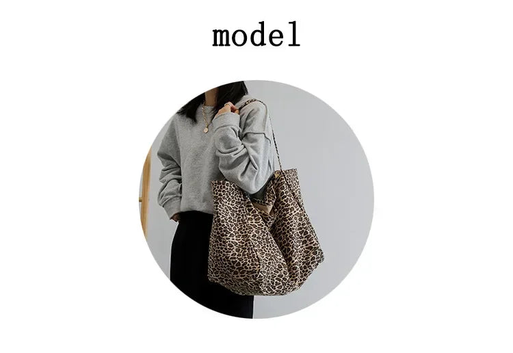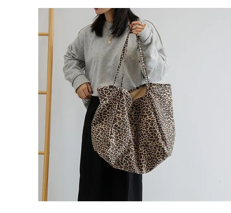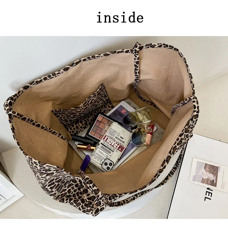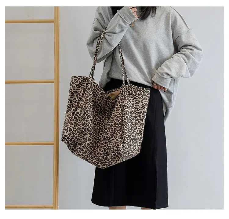 Fashion Women's Shopping Handbag Leopard Pattern Crossbody Bag Large Capacity Shoulder Bag Simple Canvas Female Bags Сумка