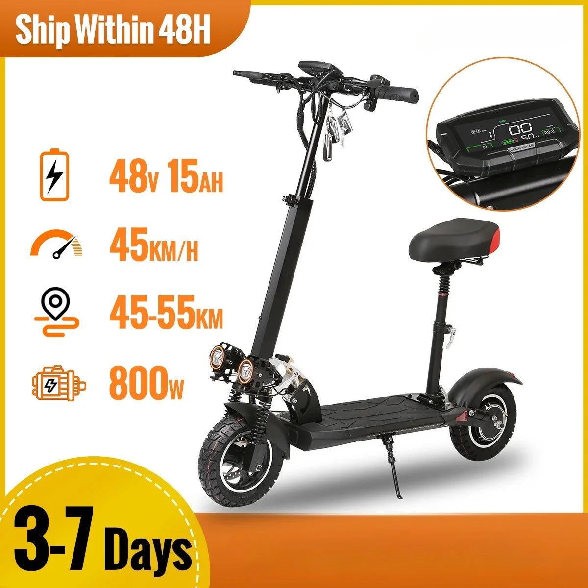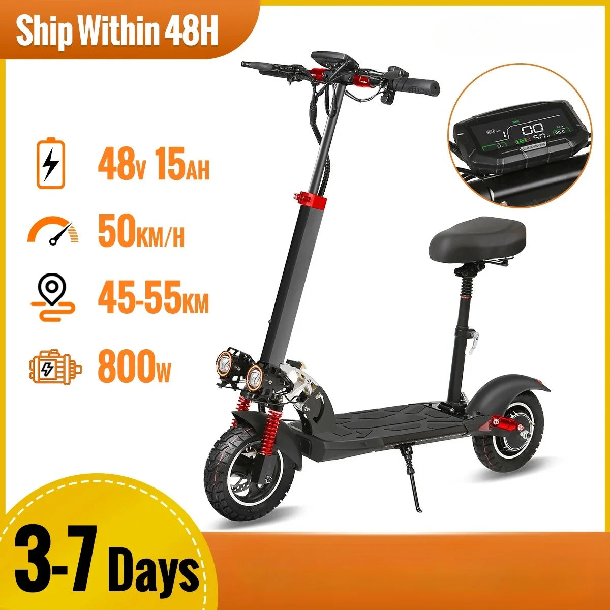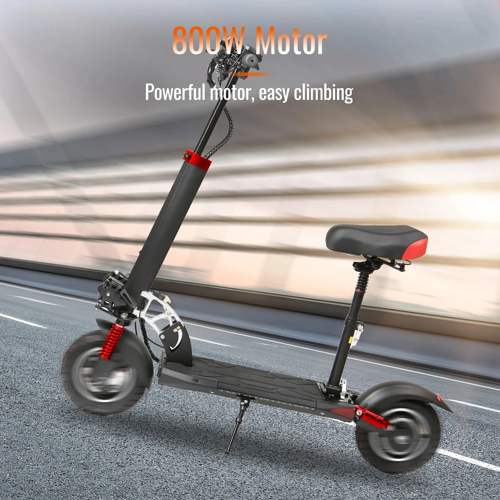 Folding EScooter 800W Powerful Electric Scooter 48V 15Ah Max Speed 50km/h 50km Range 10'' Tires Dual Shock Absorbing for Adults