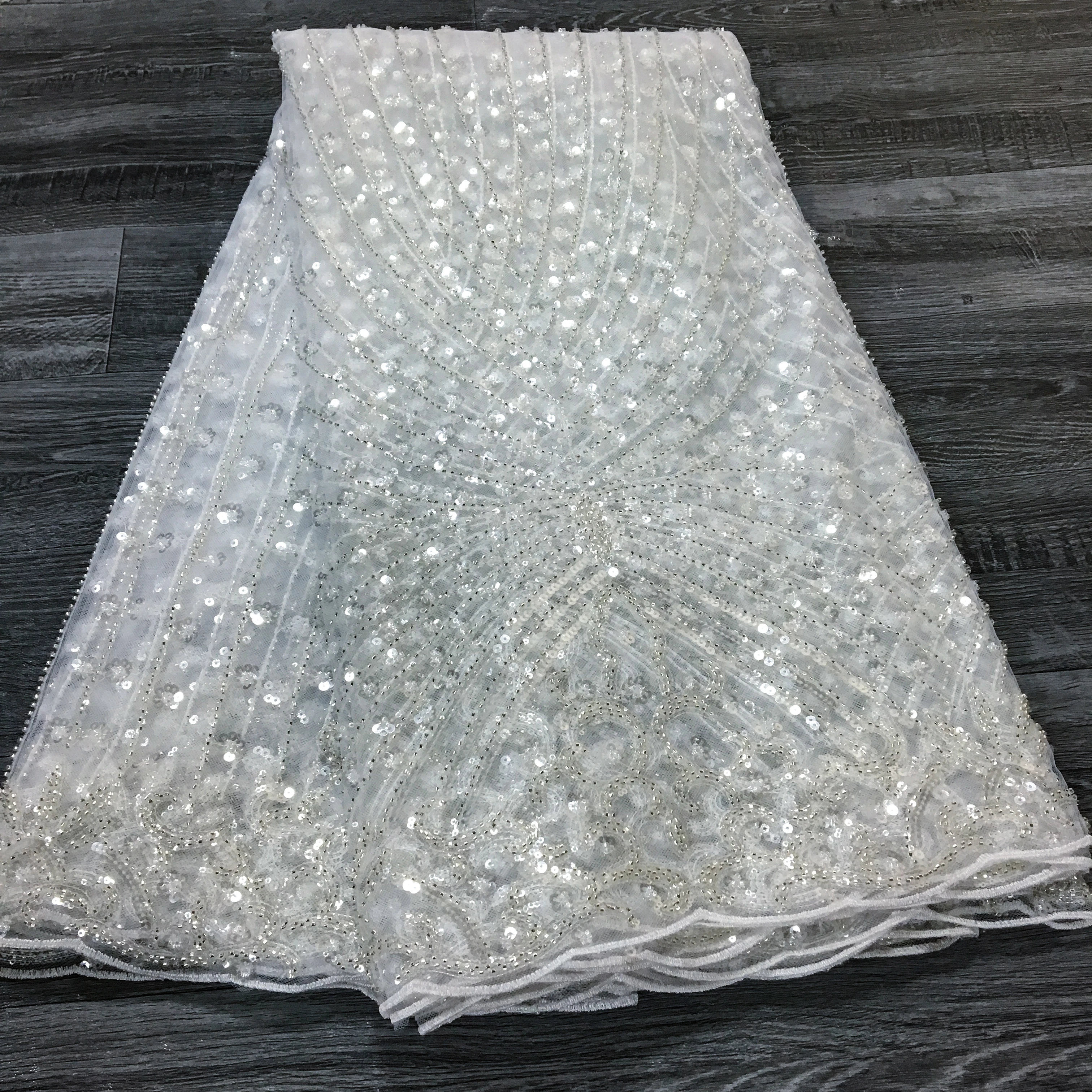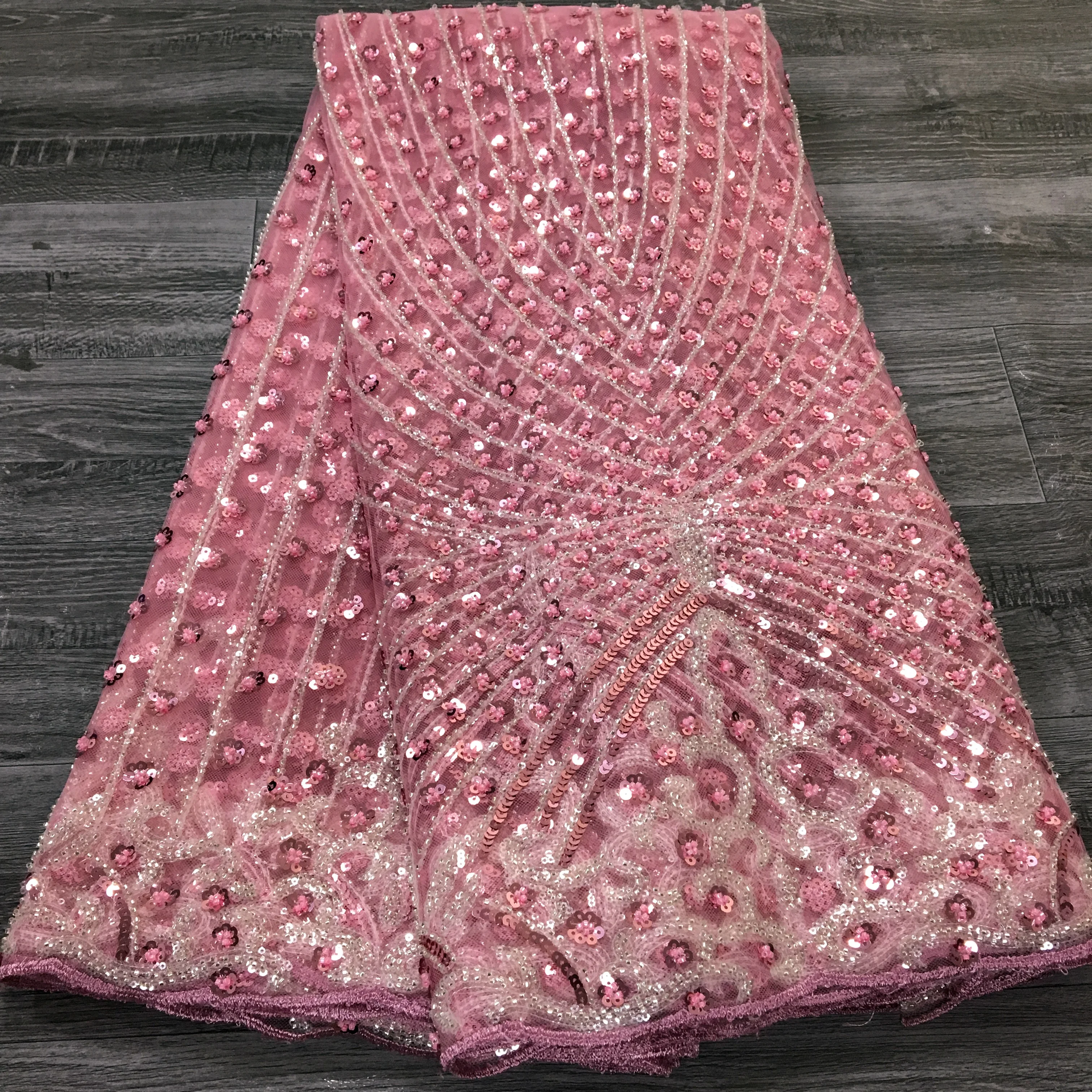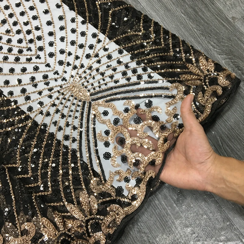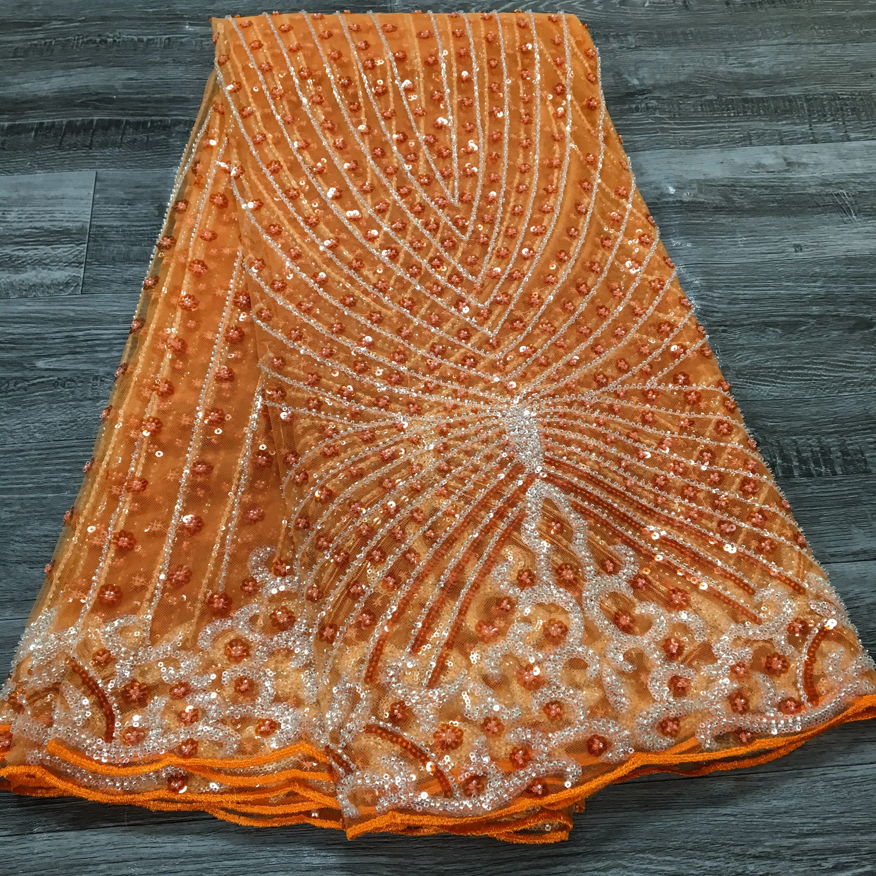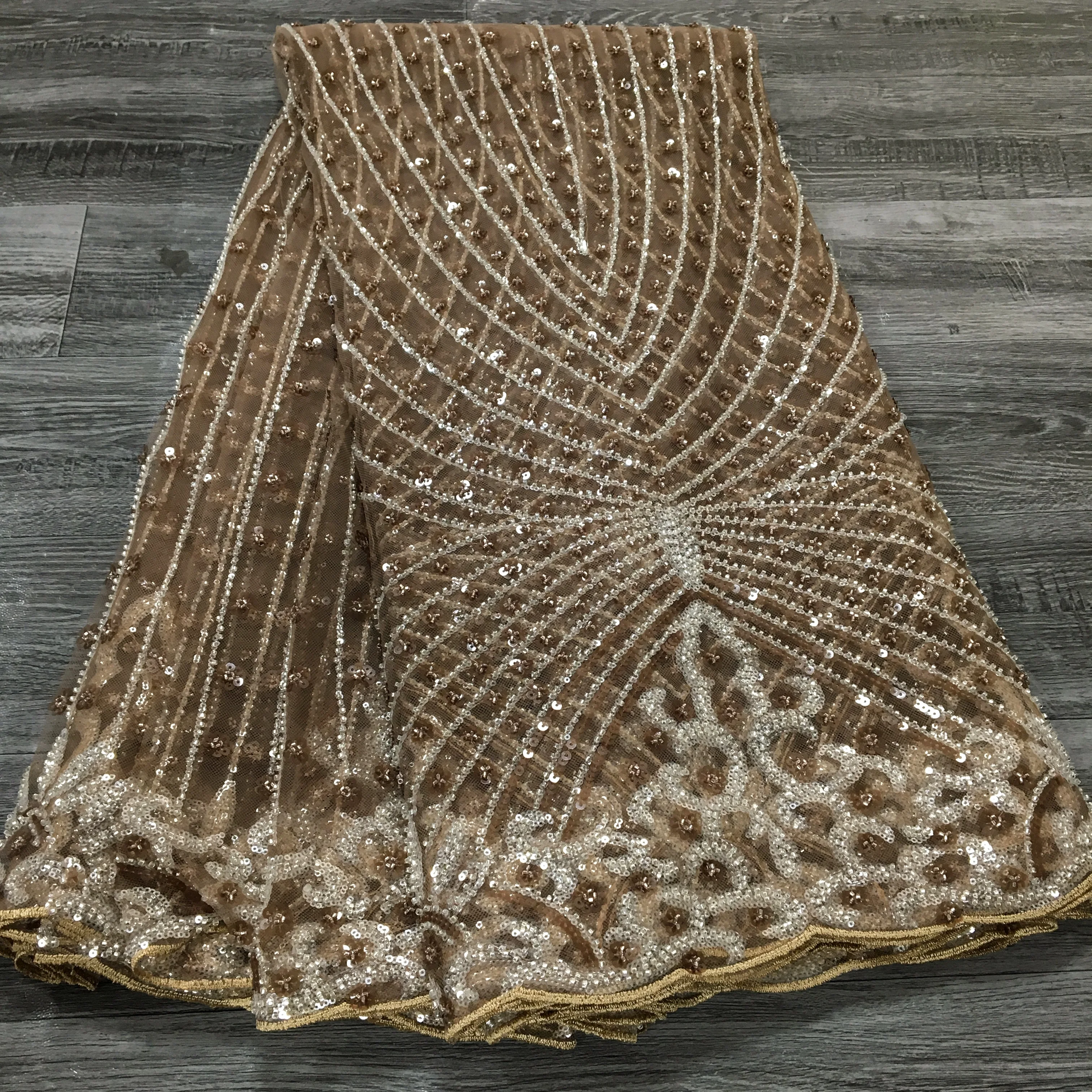 French Beaded Sequins Lace Fabric 2024 High Quality 5 Yard Mesh Tulle African Lace Fabric Nigerian Wedding Dress for Women A3736