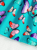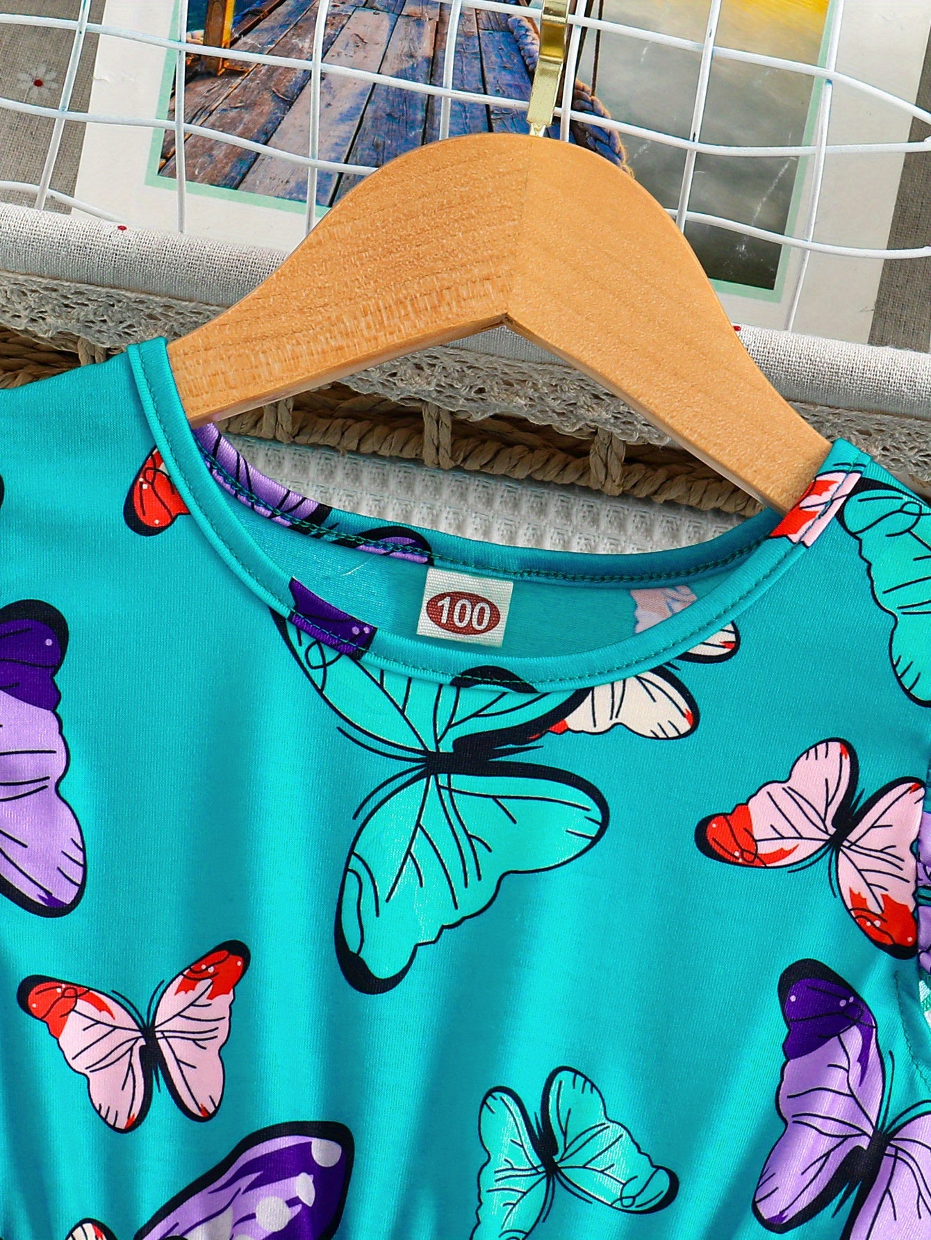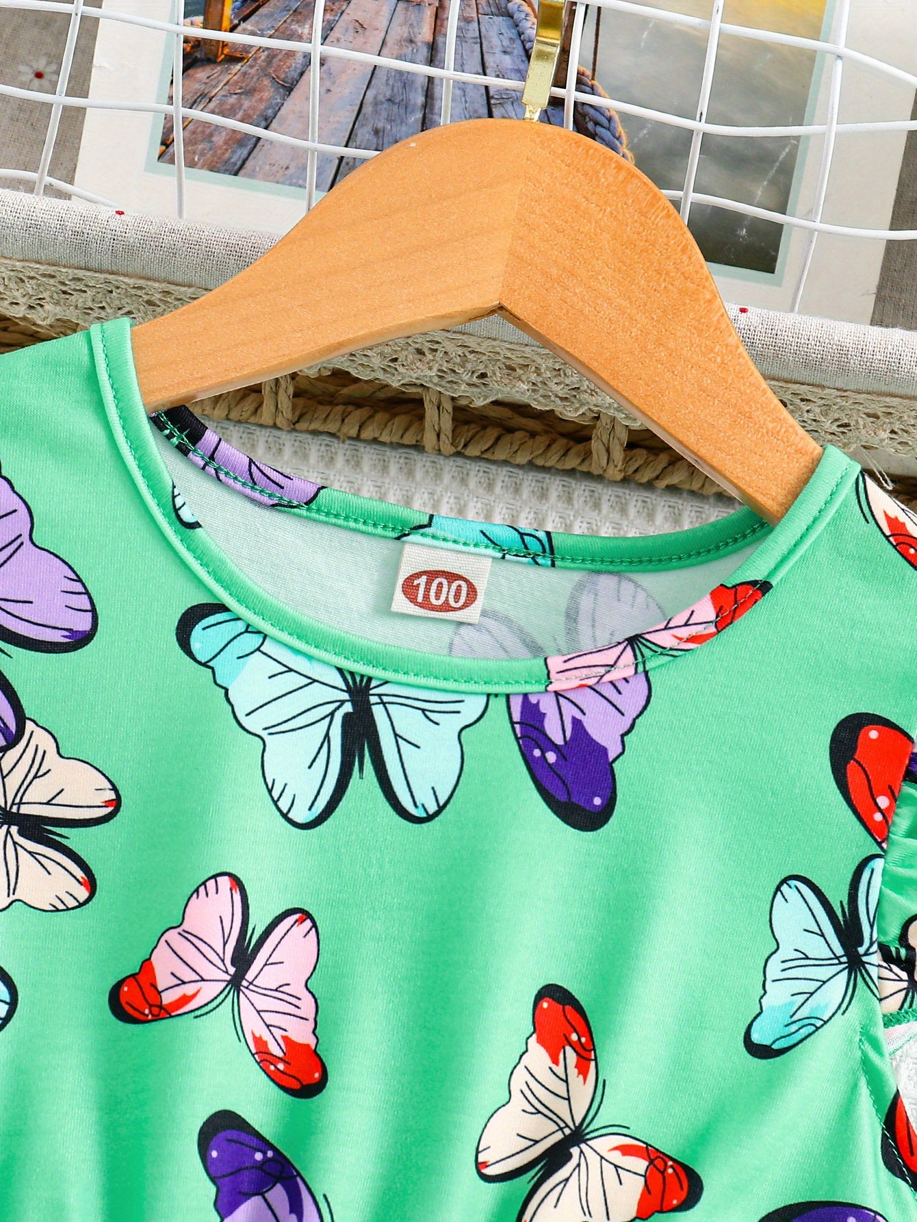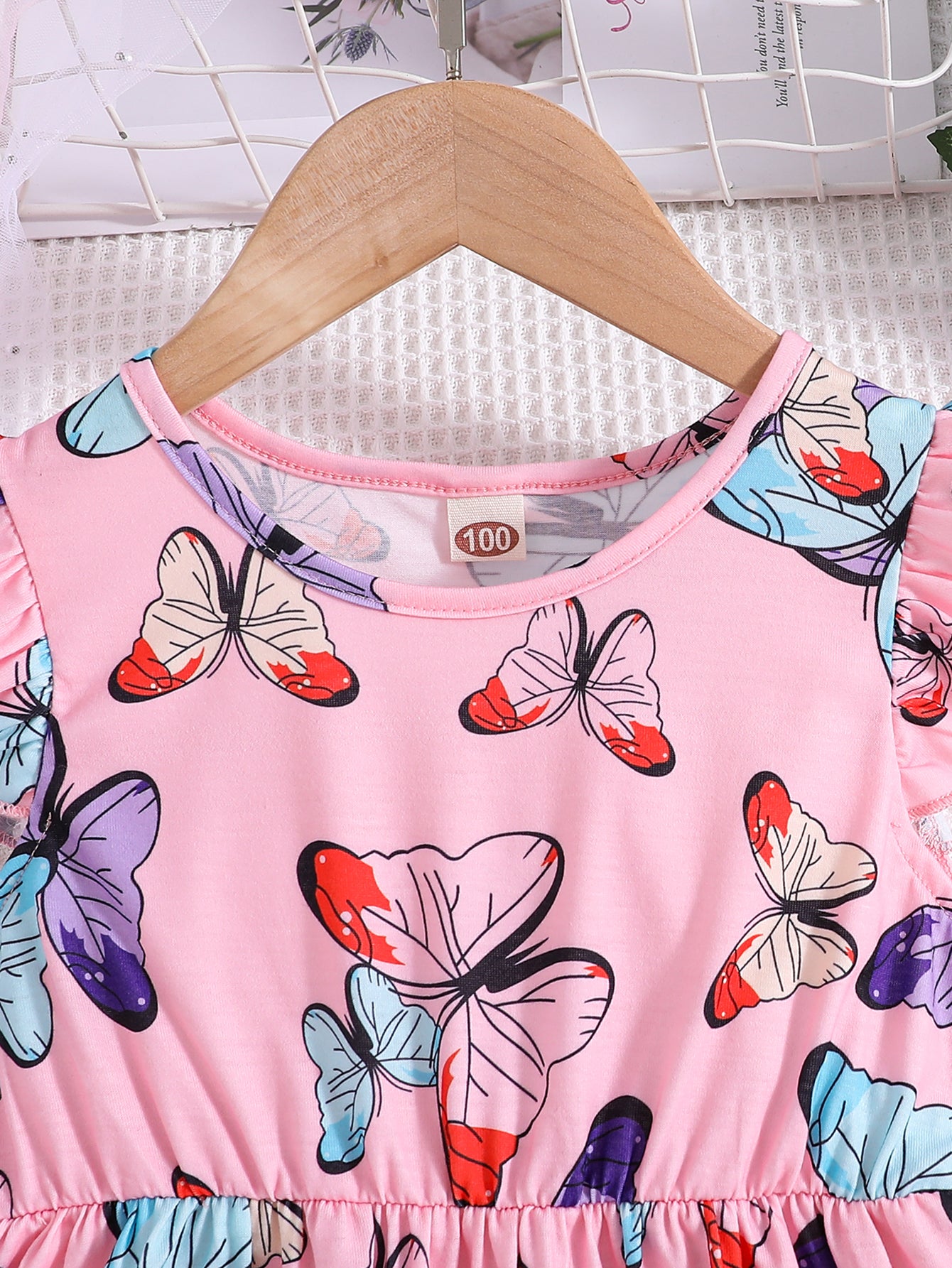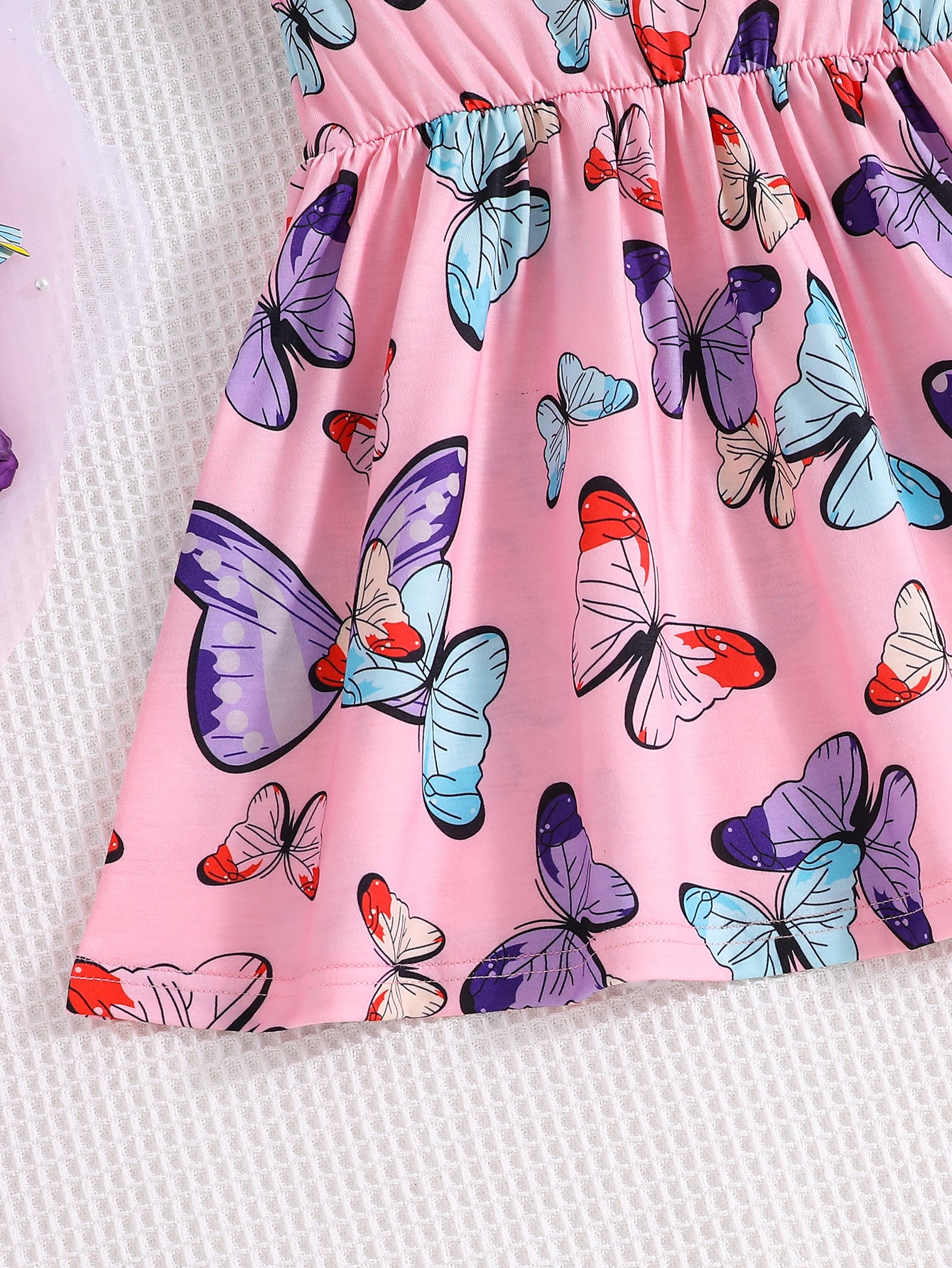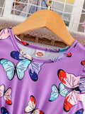 Girls' Sleeveless Butterfly Print Dress - Vibrant Purple Knee-Length Loose Fit with Ruffled Hem, Lightweight Summer Dress for Youngsters & Toddlers, Butterfly Print Dress, Youngsters'S Playwear, Playful Youngsters'S Fashion,