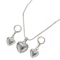 Glossy Gold Plated Metal Love Heart Dangle Earrings Necklace Jewelry Set for Women Simple Dainty Daily Wear Outfit Accessories