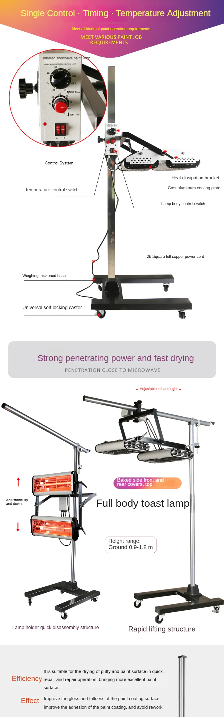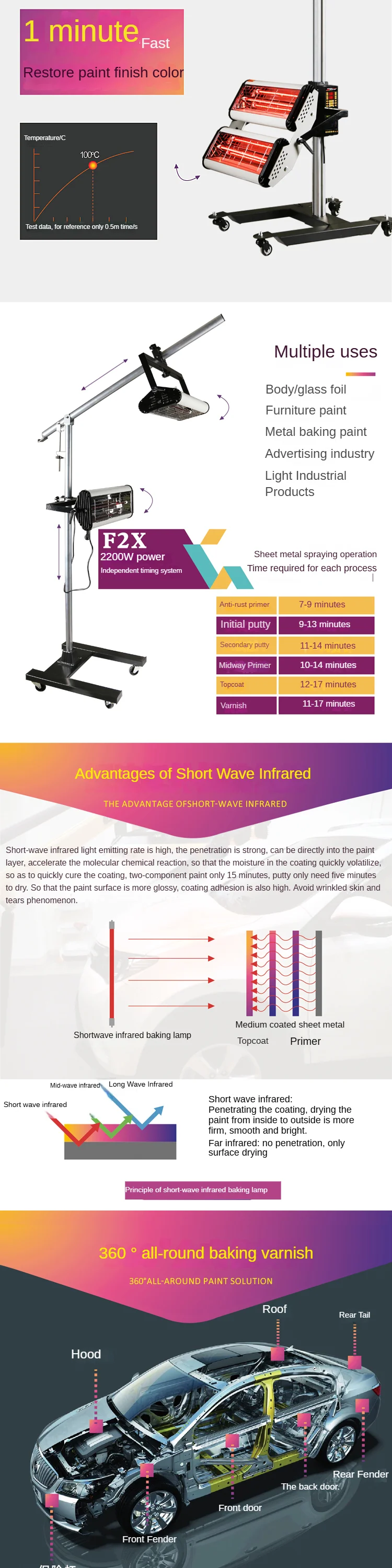 F3L (random color) car paint baking lamp high power mobile short wave infrared paint baking lamp baking room sheet metal paint baking lamp high temperature