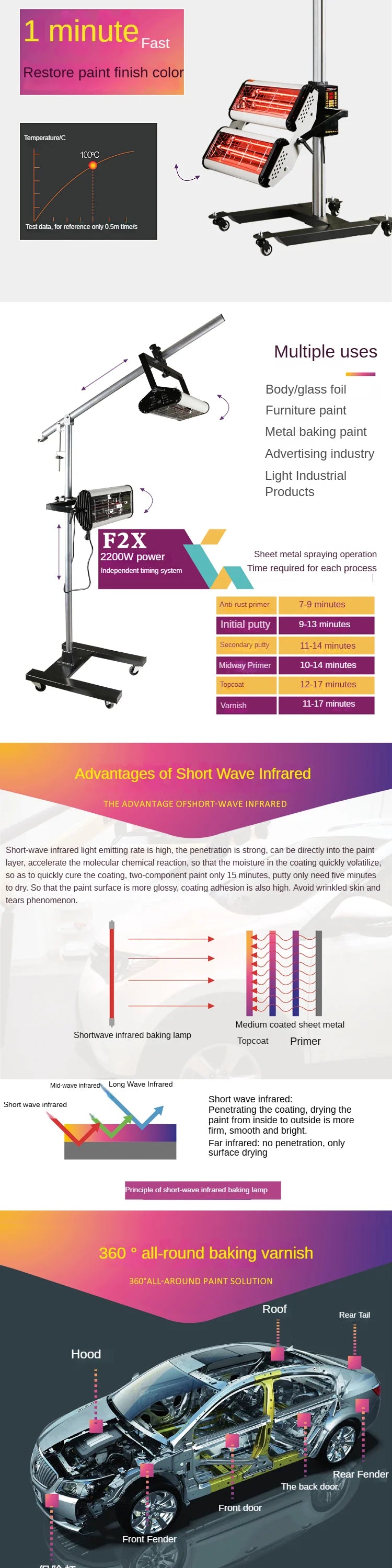 F2E (random color) car paint baking lamp high power mobile short wave infrared paint baking lamp baking room sheet metal paint baking lamp high temperature