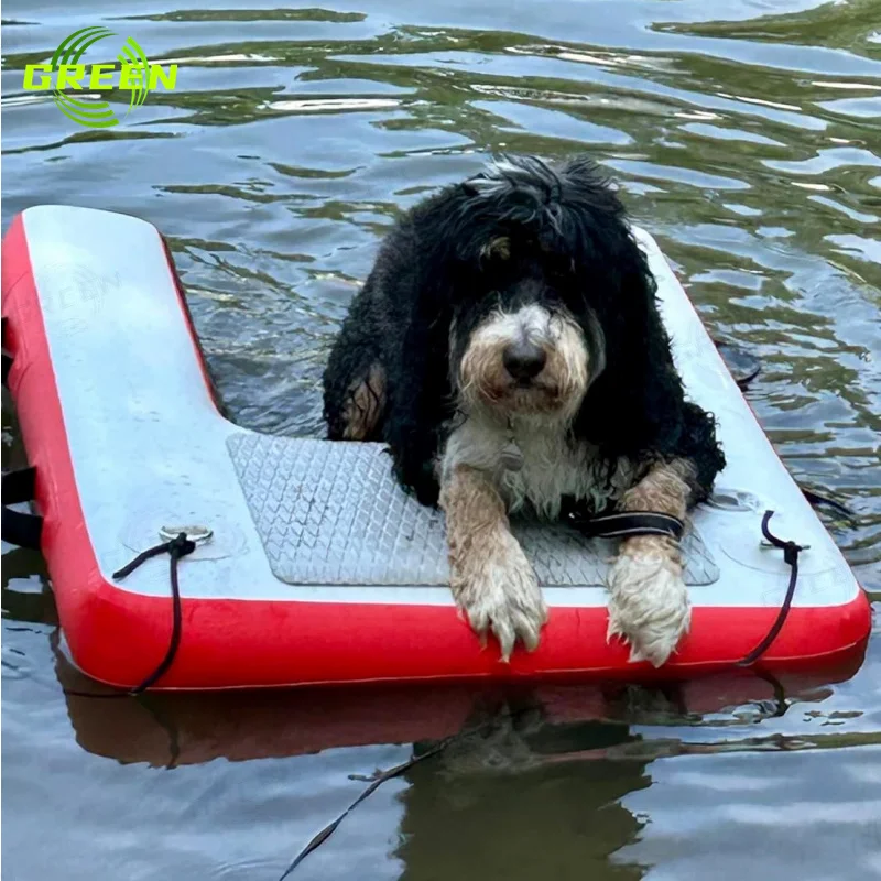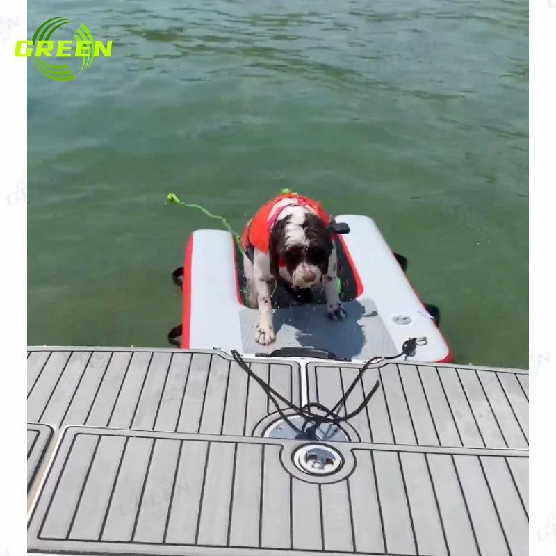 Green Portable Inflatable Boat Ramp Float Ramp Ladder on Water Pet Boat or Pool Floating Climb Air Dock Platform Dog Ramp