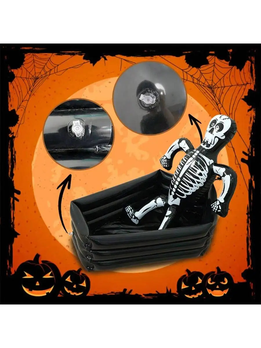 Elevate your halloween party with this one - a - kind inflatable ice bucket!Shaped like a spooky skull - and - coffin combo, it's the perfect centerpiece to chill your drinks and amp up the creepy - cool vibes.Whether it's a haunted house bash or a backyard trick - or - treat meetup, this ice bucket brings the halloween spirit to life (or afterlife!).