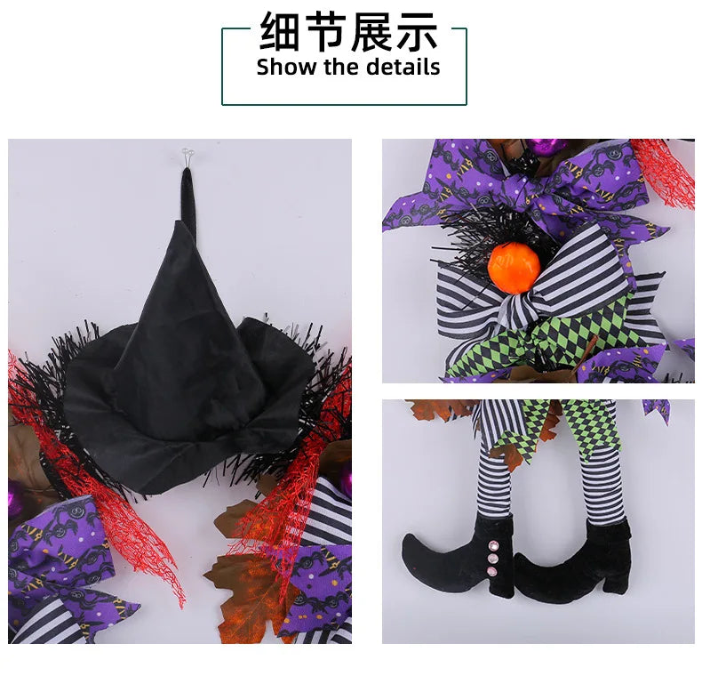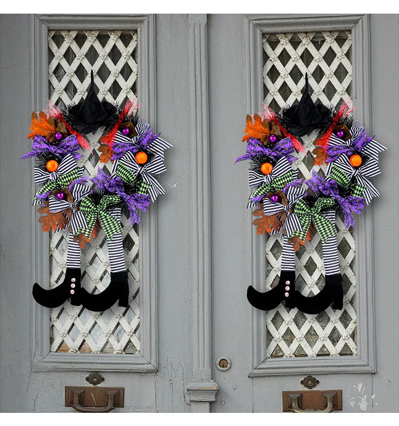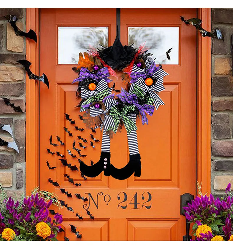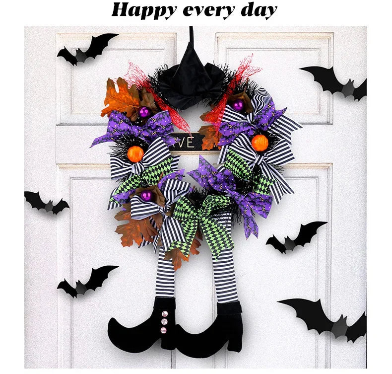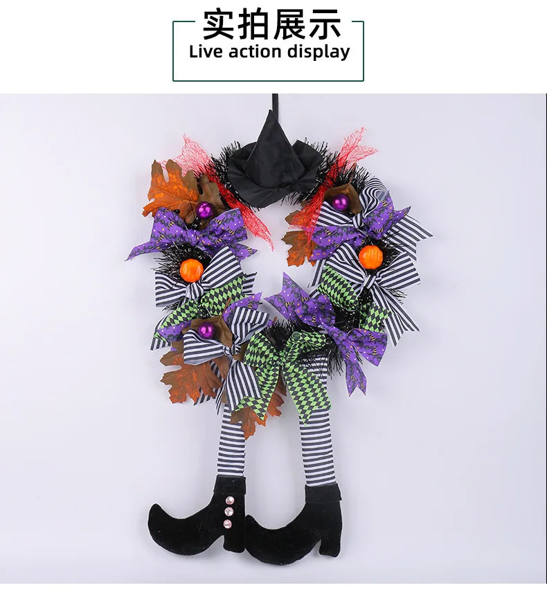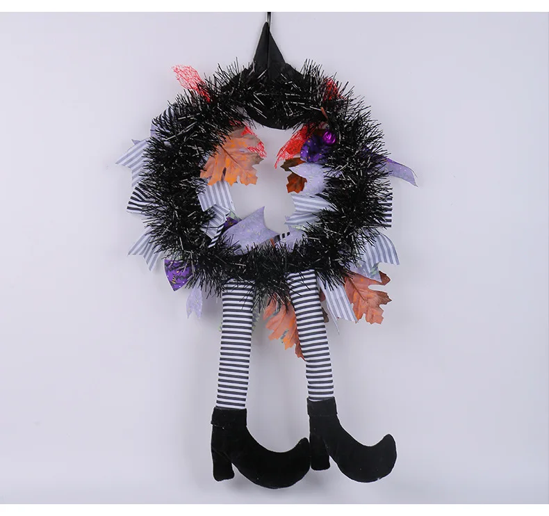 Halloween Decoration Witch Hat Long Legs Pumpkin Wreath Door Hanging Haunted House Horror Wreath Decorative Pendant Props