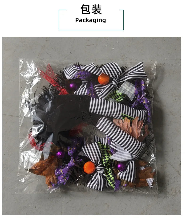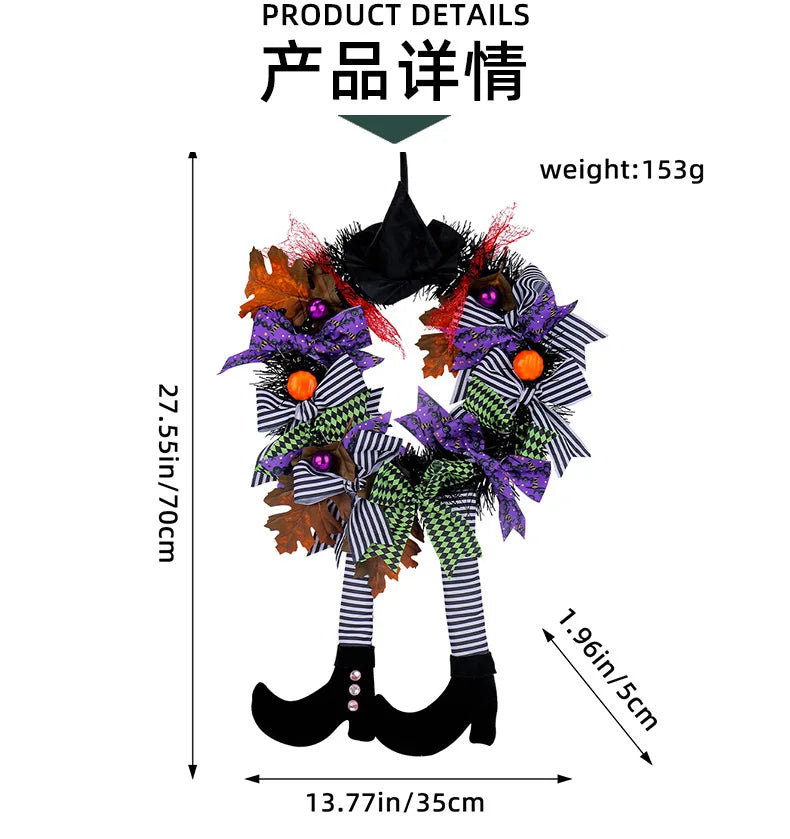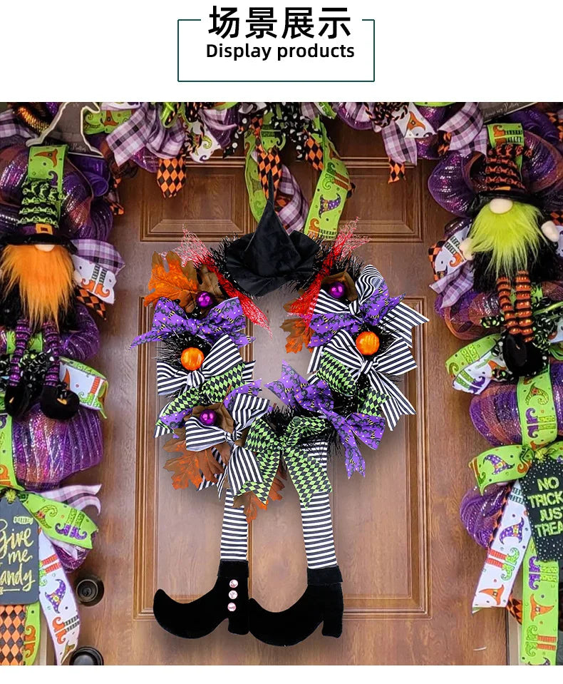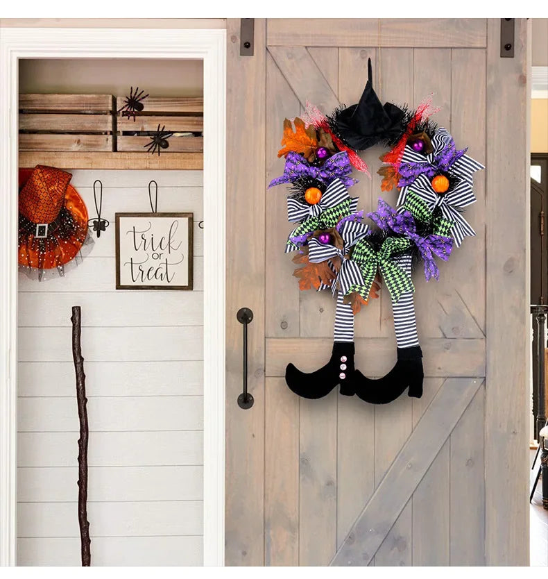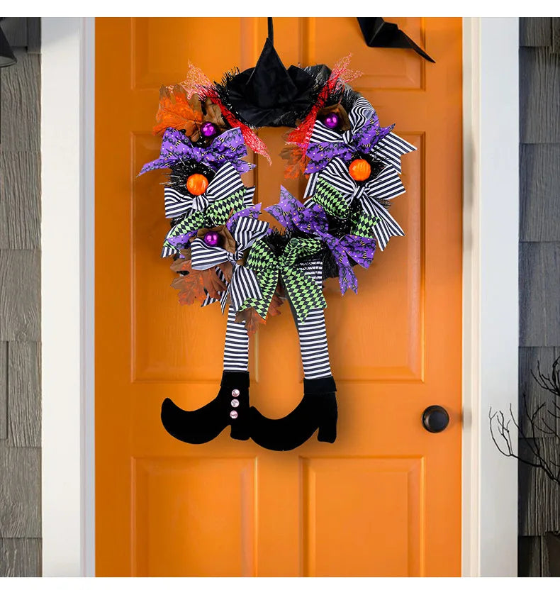 Halloween Decoration Witch Hat Long Legs Pumpkin Wreath Door Hanging Haunted House Horror Wreath Decorative Pendant Props