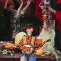 "Perfectly Blends in & Easy to ": These skeleton guitarists are the right size to fit perfectly into your home space, and easily with other decorations to form a Halloween themed decoration design scheme for your house. You can place a skeleton cowboy sitting in any corner, or a skeleton banjo player among a bunch of Halloween decorations.