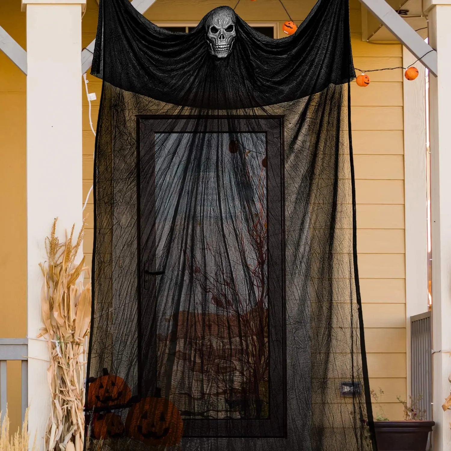Halloween Hanging Skull Ghost Haunted House Decoration With LED Sound Ghost Ornament Indoor Outdoor Bar Halloween Party Decor