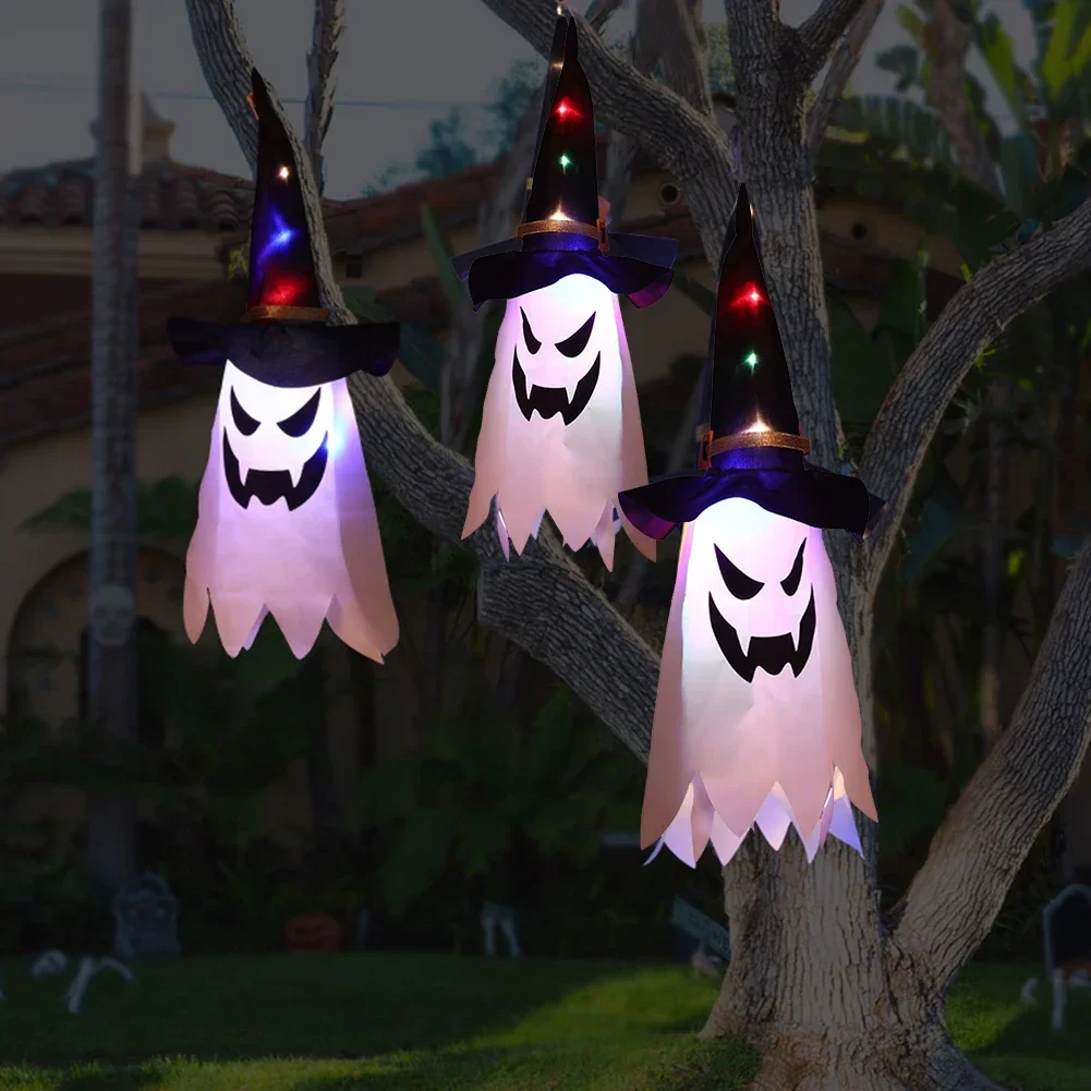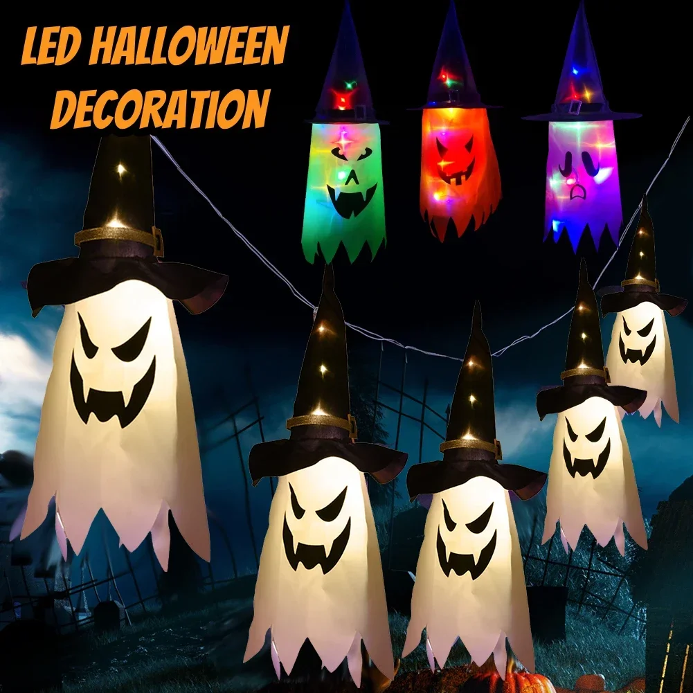 Halloween LED Flashing Light Hanging Ghost Halloween Party Dress Up Glowing Wizard Hat Lamp Horror Props Home Bar Decoration