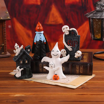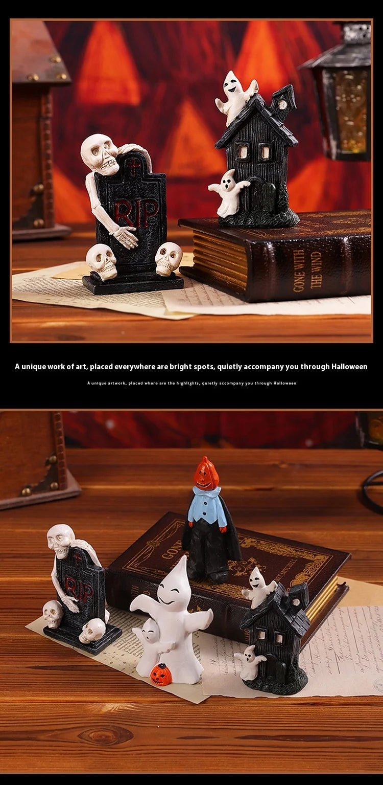 Halloween Party Pumpkin Haunted House Decorations Resin Props Ornaments Desktop Atmosphere Creative Mini Haunted House Ornaments