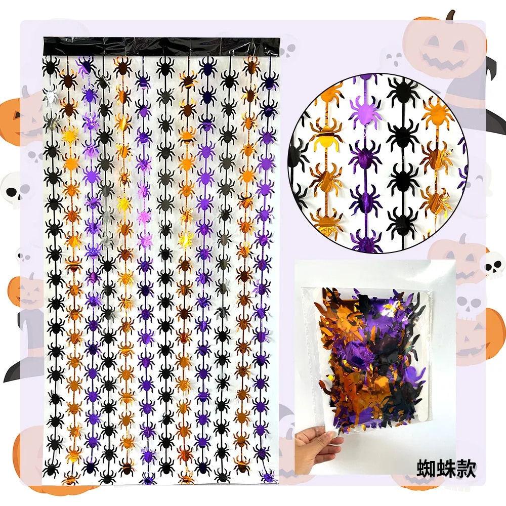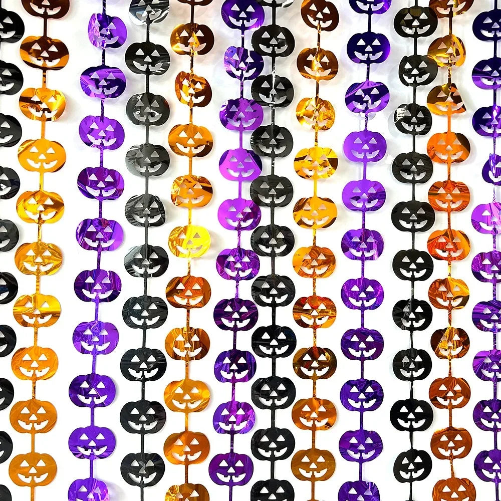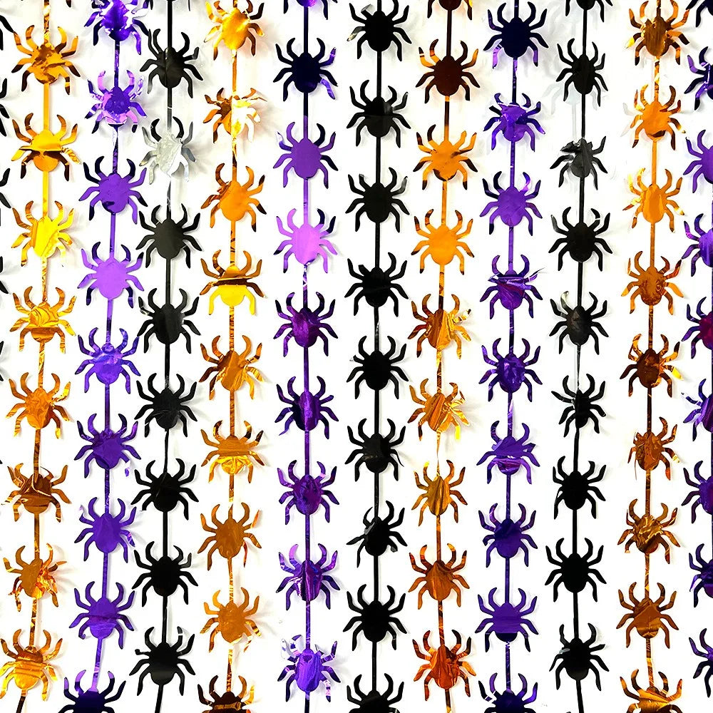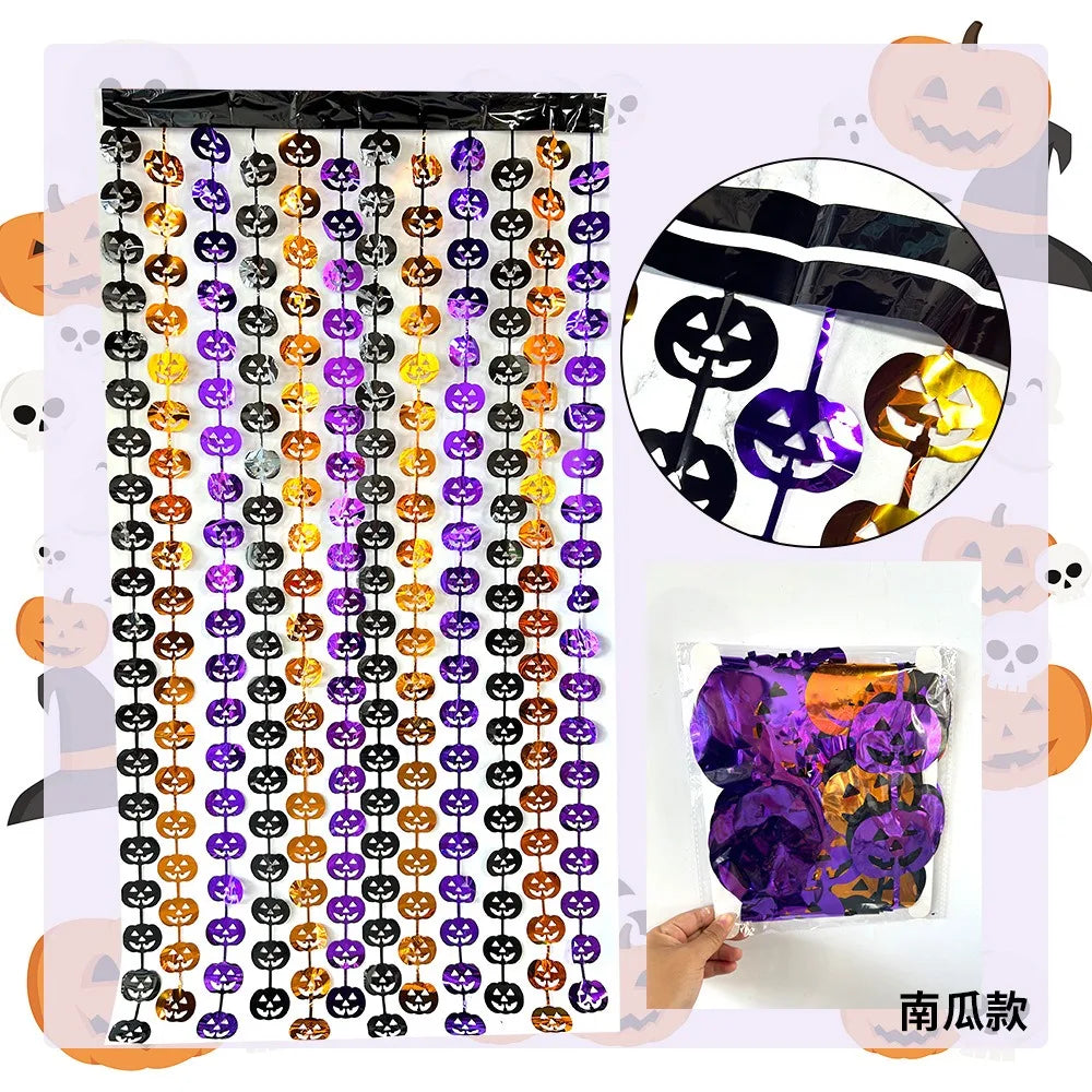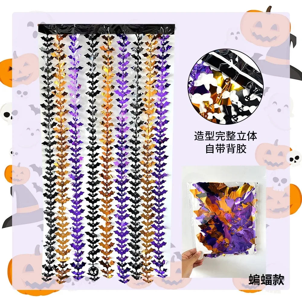 Halloween Reflect Light Bat Pumpkin Banner Spider Curtain Garlands Door Hanging Pendants Happy Halloween Party Decor For Home