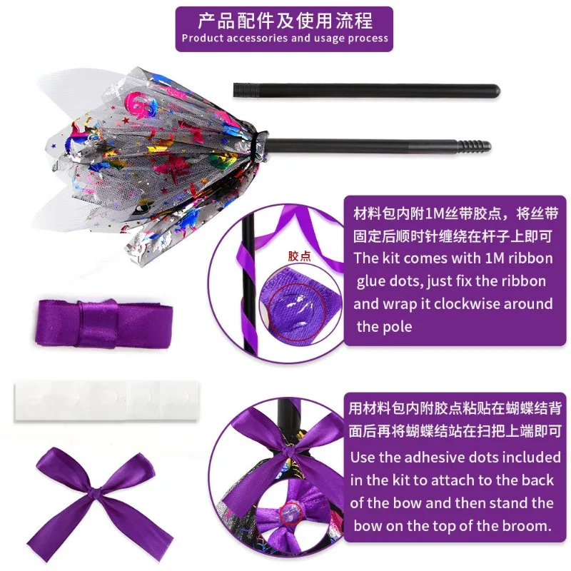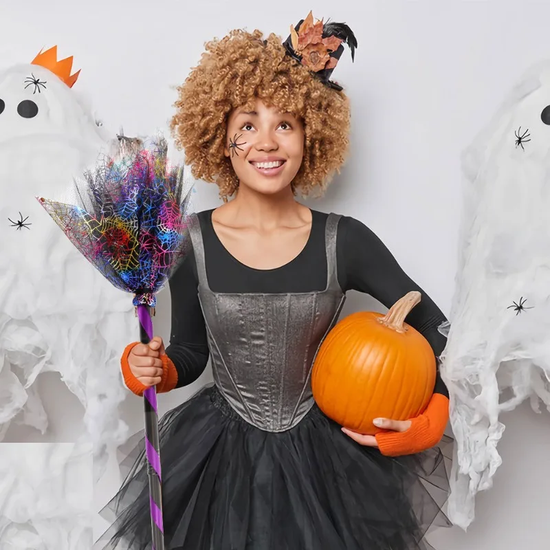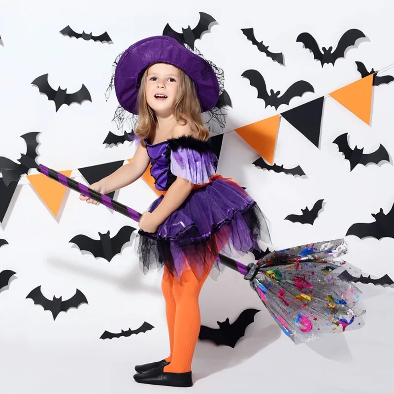 Halloween Witch Broom Witch Costume Broom Removable Wizard Broomstick for Adult Kids Halloween Masquerade Cosplay Props