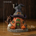 Halloween Witch Hat House Decoration with LED Lights, Pumpkin & Skull Figurines, Haunted Tree, Spooky Tabletop Holiday Ornament