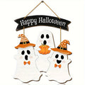 Halloween Wooden Hanging Sign | Multi-Color Festive Decor with Ghosts in Costumes & Pumpkin Design | Bohemian Style Wall Art