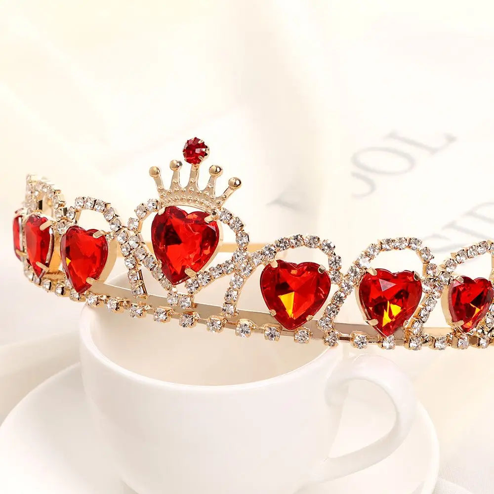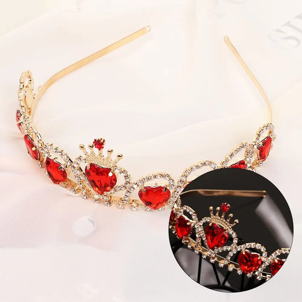 Headwear Rhinestone Tiara Bling Bling Birthday Heart Headband Tiaras for Girls Princess Crown Handmade