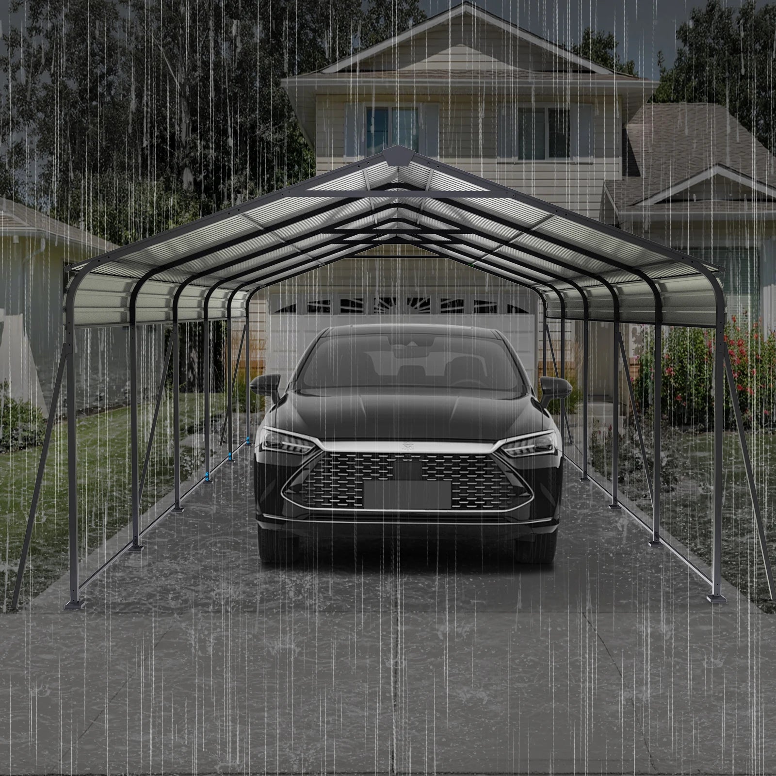 Heavy Duty 13X26.5 FT Metal Carport with Galvanized Steel Roof Gray Color for Car Boat Truck Parking Outdoor Use