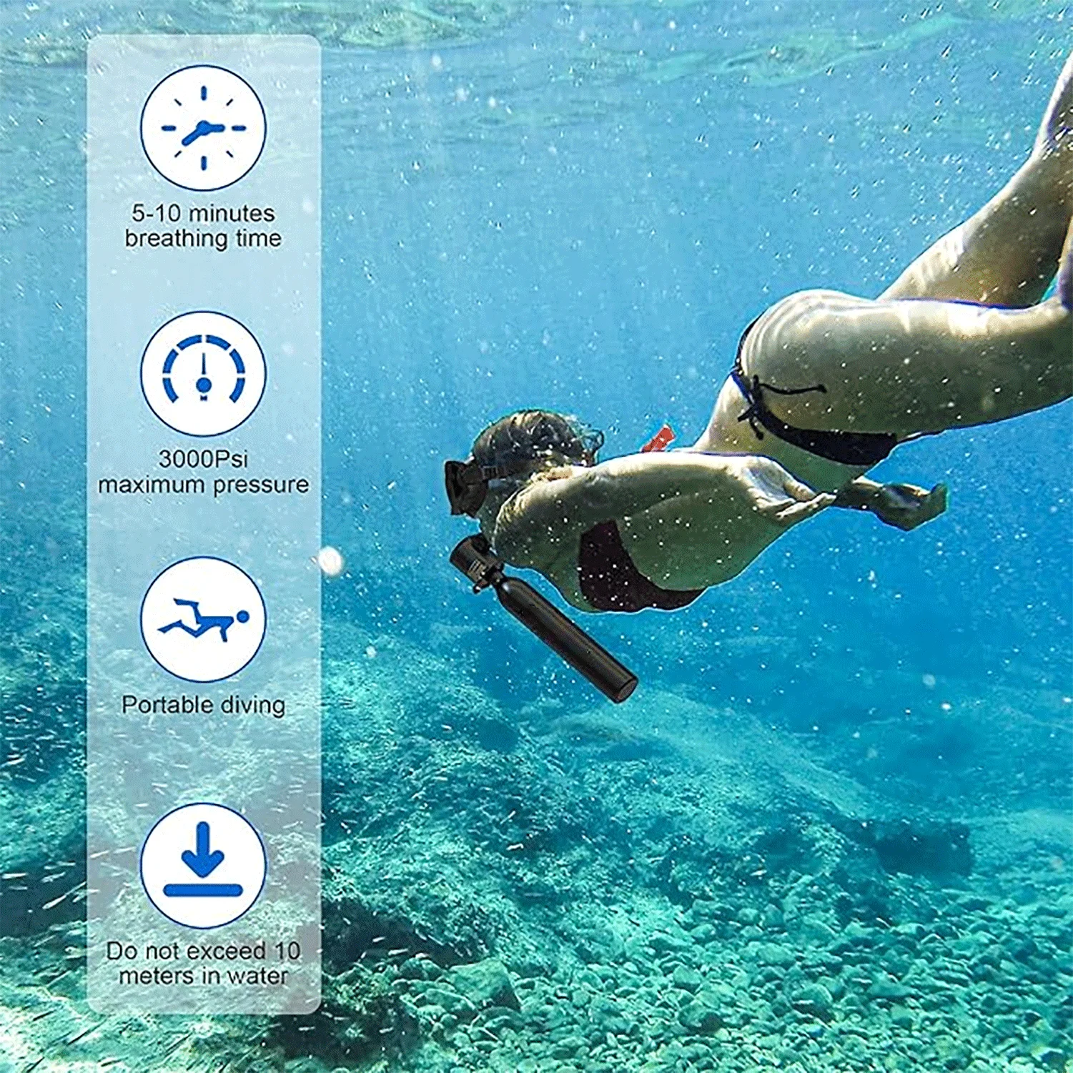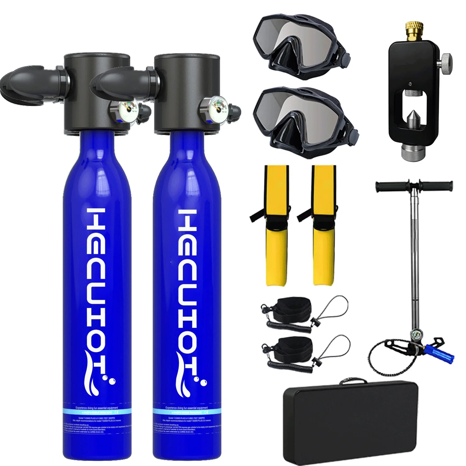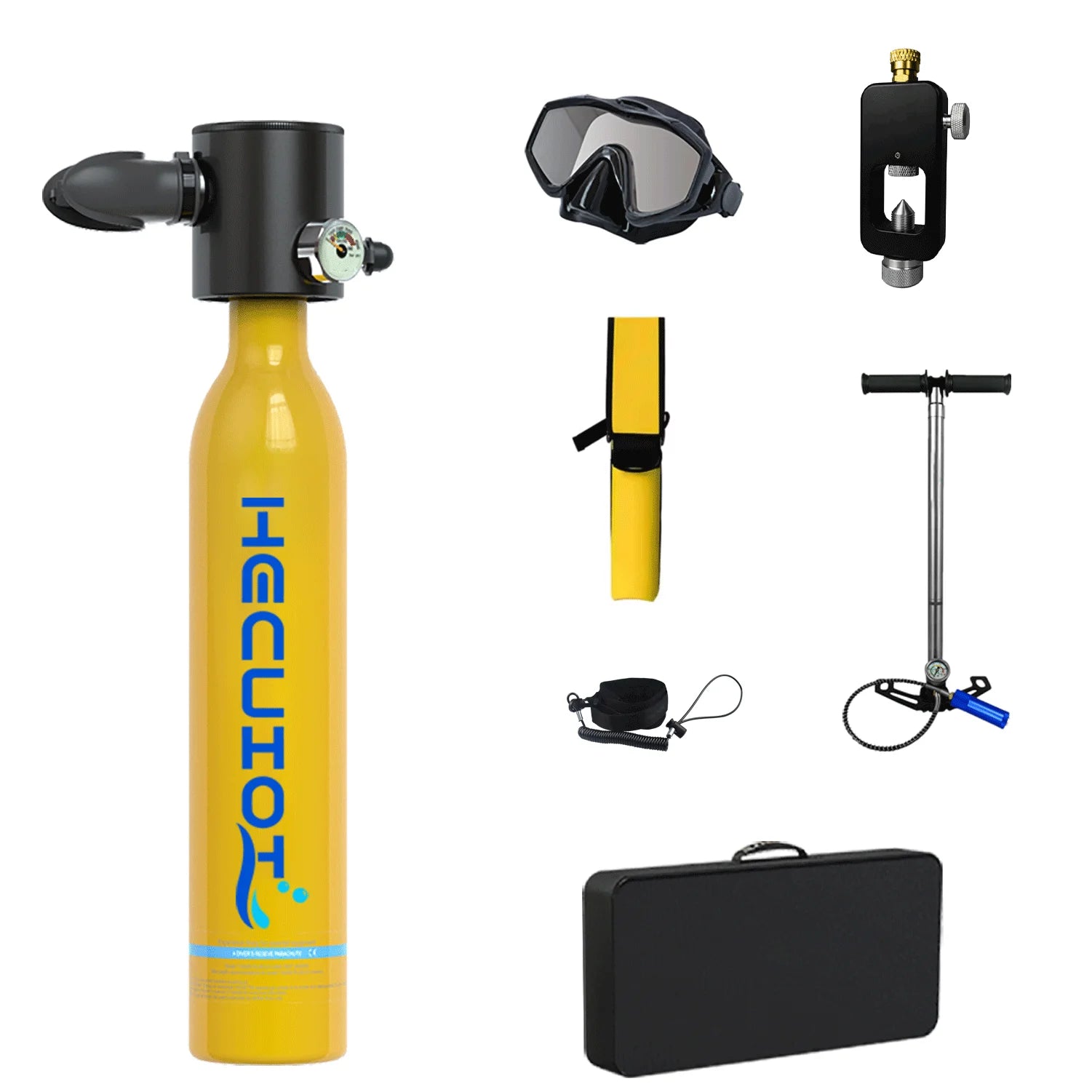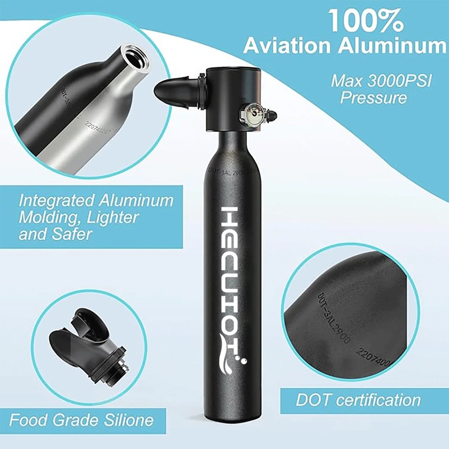 HECUIOI Mini Scuba Tank Diving Equipment 0.5L Outdoor Oxygen Scuba Diving Tank 5-10 Minutes Cylinder Snorkeling Set Hand Pump