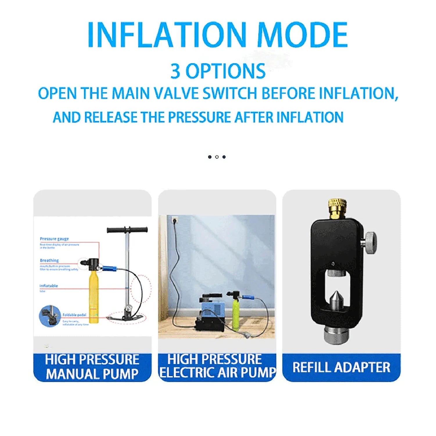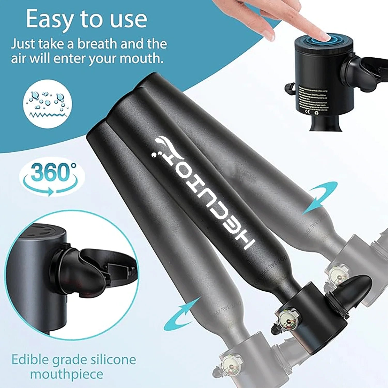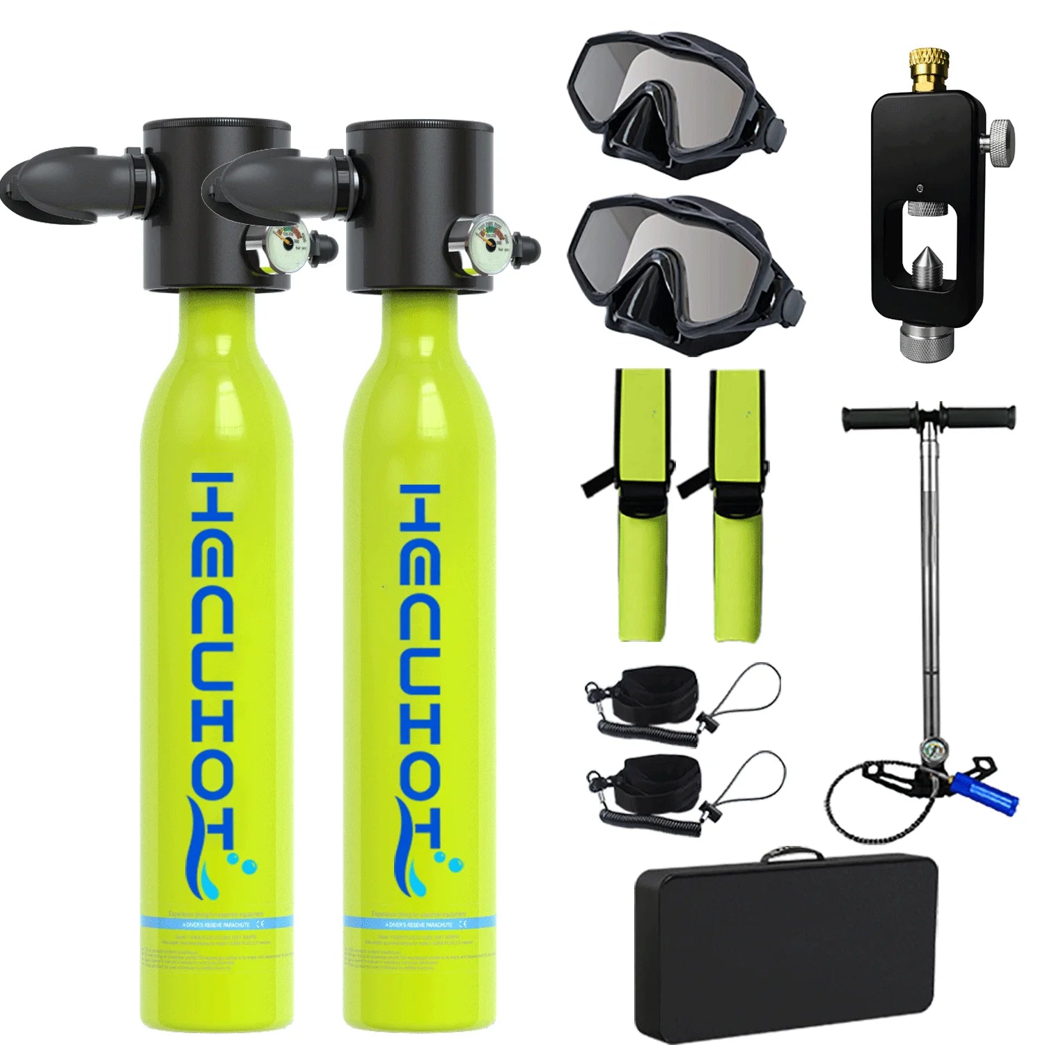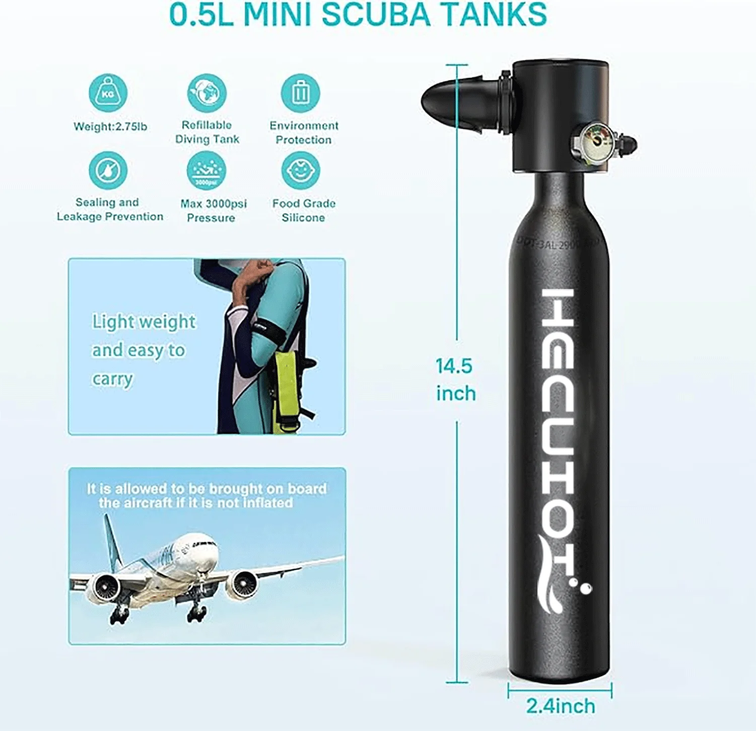 HECUIOI Mini Scuba Tank Diving Equipment 0.5L Outdoor Oxygen Scuba Diving Tank 5-10 Minutes Cylinder Snorkeling Set Hand Pump