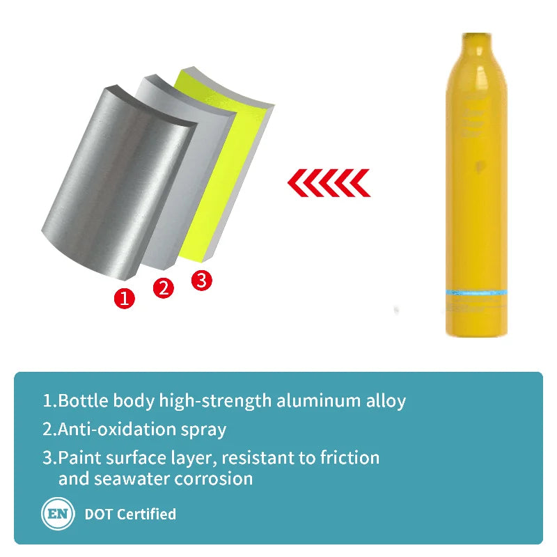 1. The 0.5L oxygen cylinder allows the diver to stay 1-10 meters underwater for 5-12 minutes (depending on individual lung capacity and depth of diving), perfect for beginners.