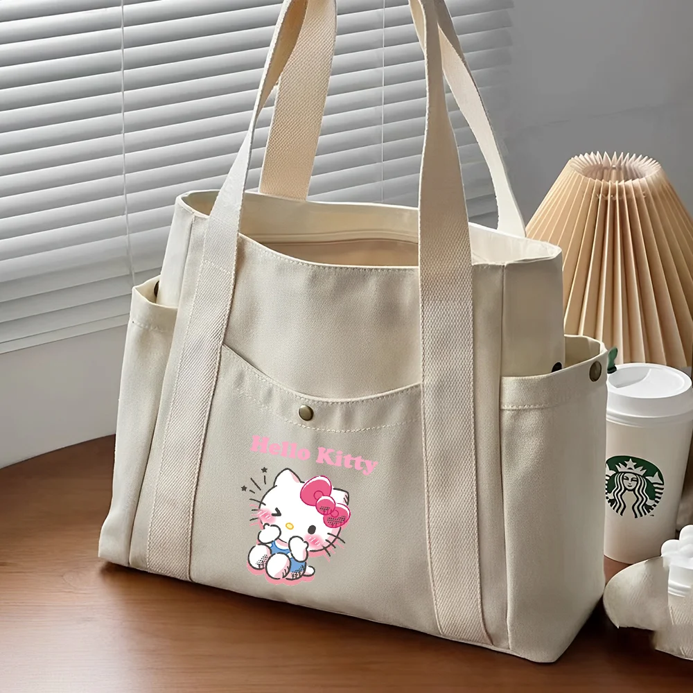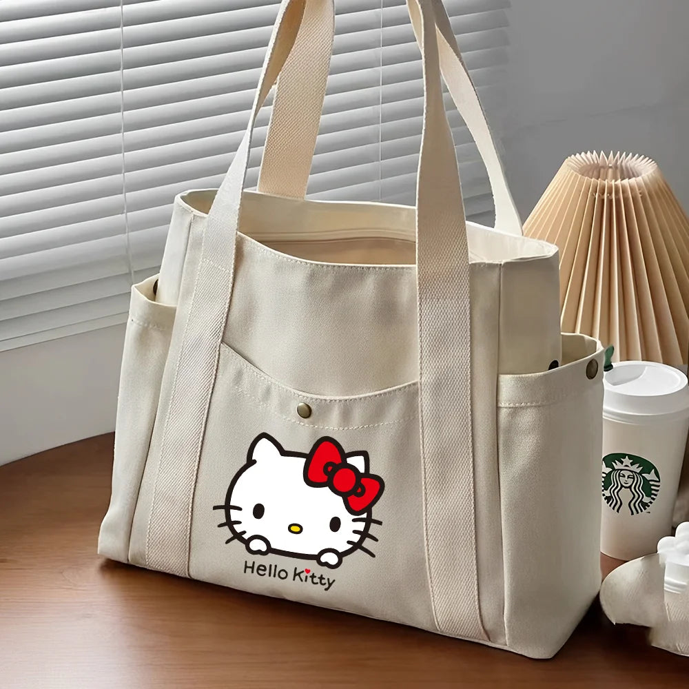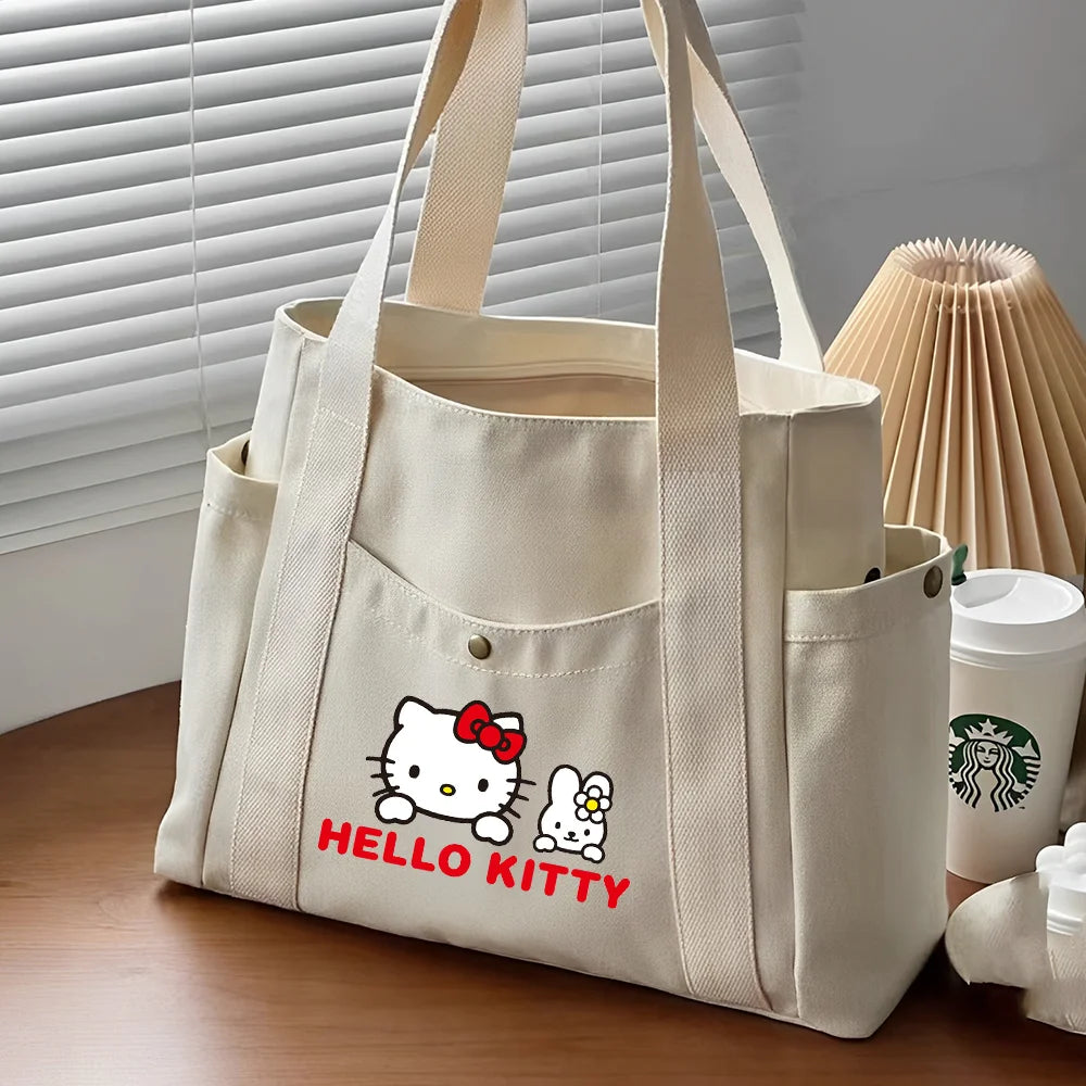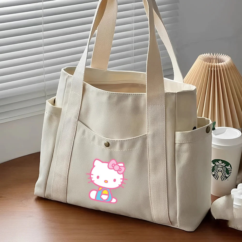 Hello Kitty Large Capacity Canvas Tote Bags Work Commuting Carrying Bag College Style Student Outfit Book Shoulder Shopping Bag