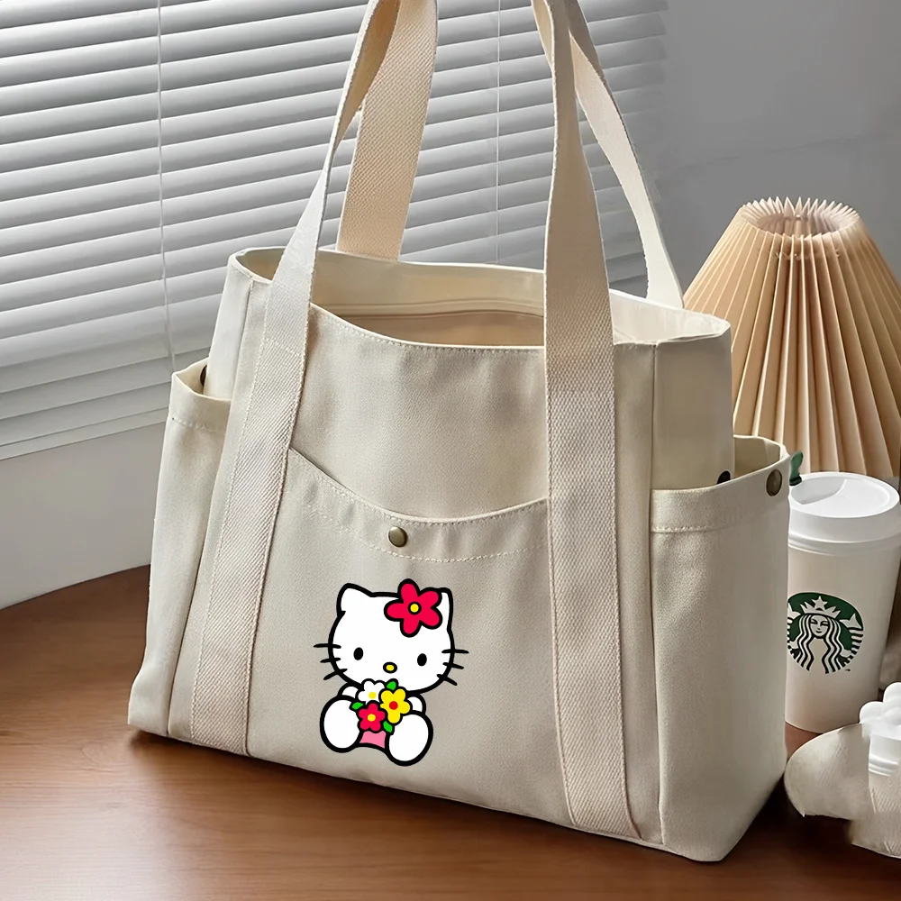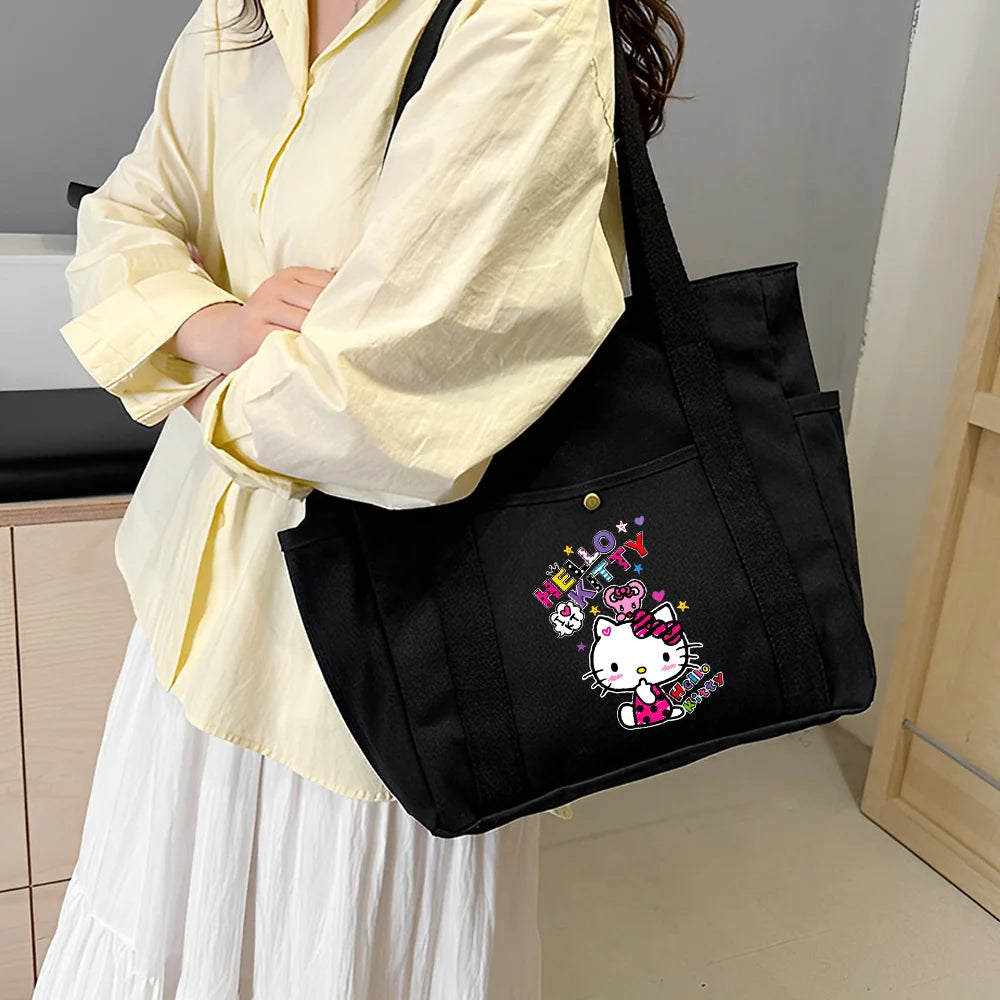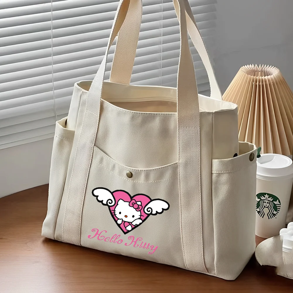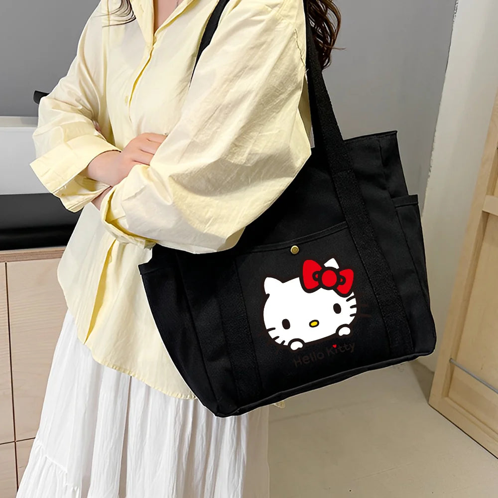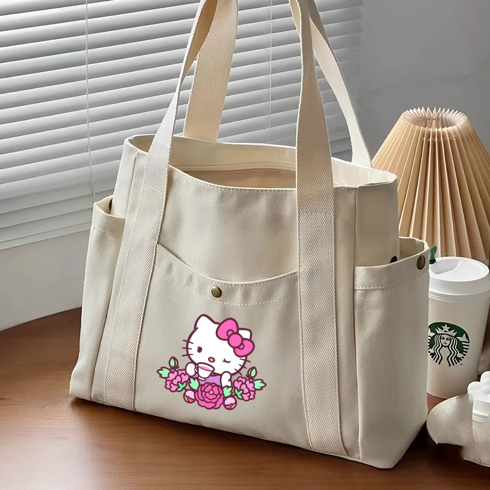 Hello Kitty Large Capacity Canvas Tote Bags Work Commuting Carrying Bag College Style Student Outfit Book Shoulder Shopping Bag