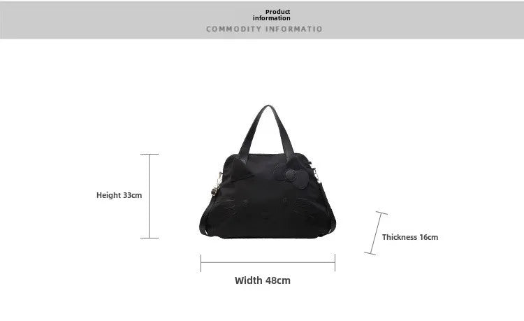Brand: Sanrio Name: Sanrio Hello Kitty Travel Handbags Fabric: Nylon Size: About 33CM*48CM*16CM Features: Exquisite Workmanship Cute and Portable Fashion
