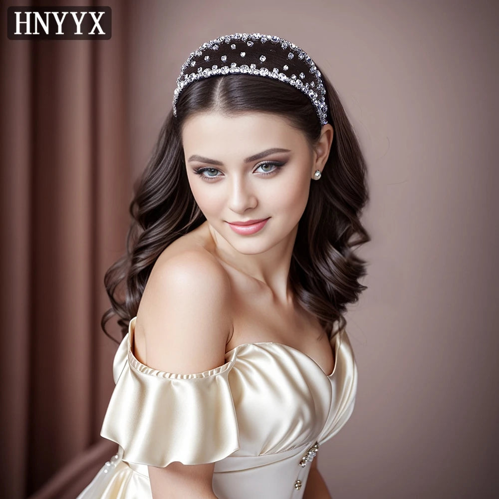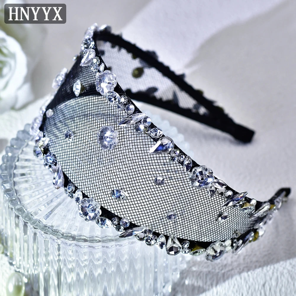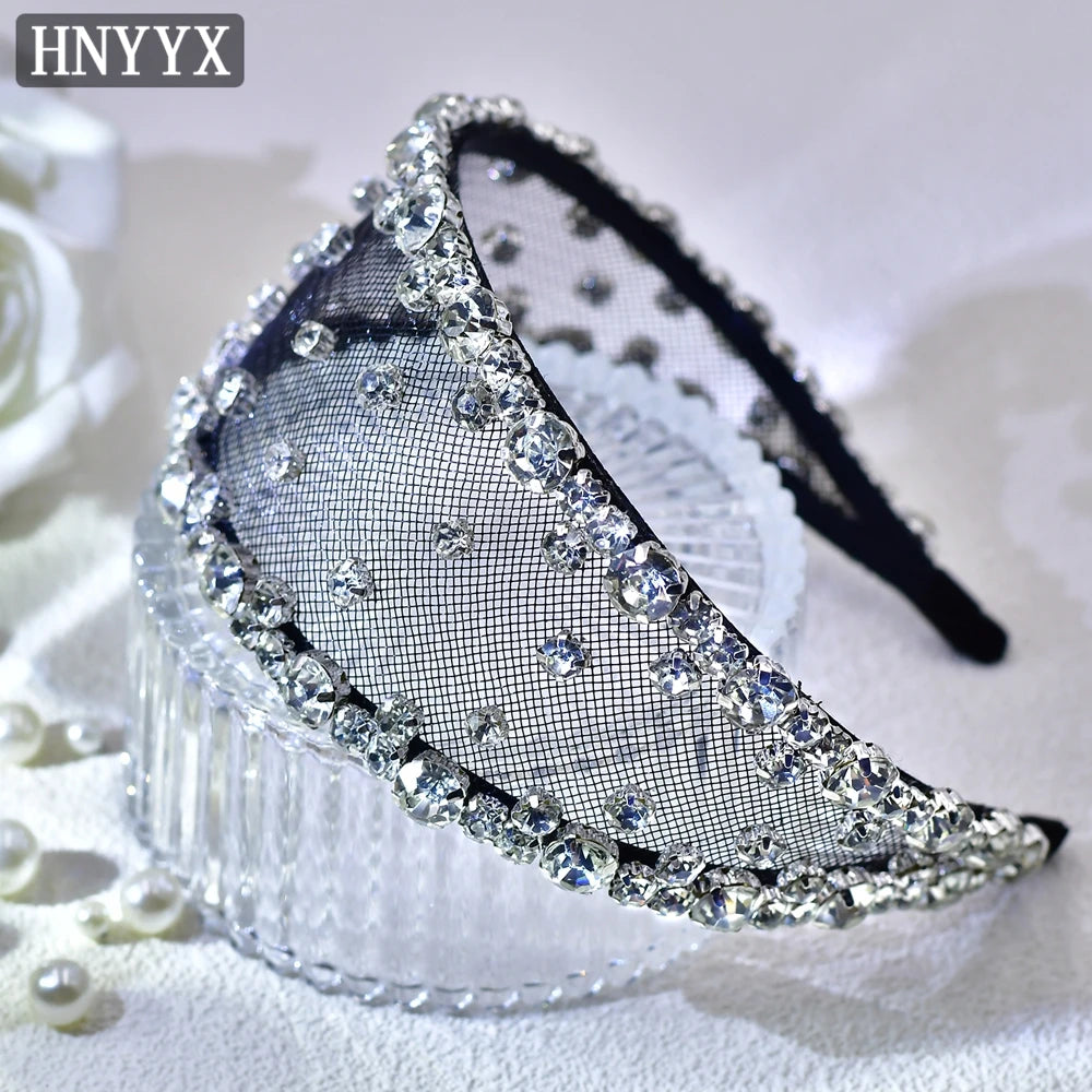 HNYYX Bling Rhinestone Headband Wide Baroque Luxury Hair Hoop Fashion Hair Accessories for Women Party Wedding Hair Jewelry A43