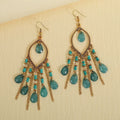 Hollow Teardrop Natural Stone Chain Design Dangle Earrings Alloy Jewelry Exquisite Female Gift Tourism Souvenir