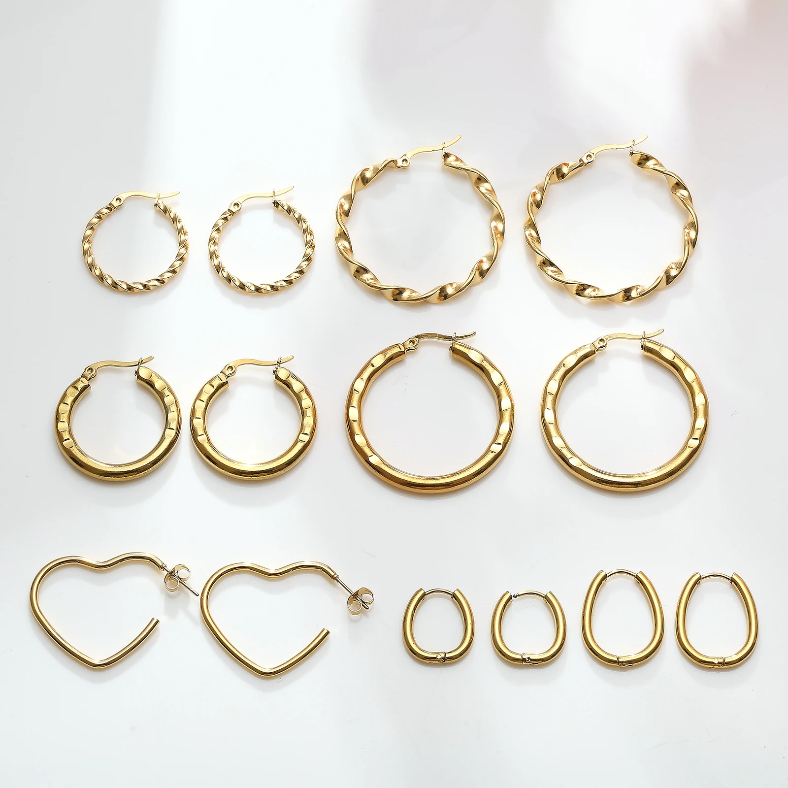 Hoop Earrings Women Set 18k Gold Plated Hoop Earrings with Custom Large Diamond Diamond Stainless Steel Big Gold Hoop Earrings