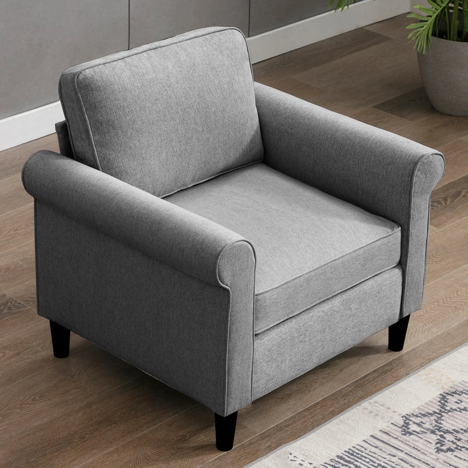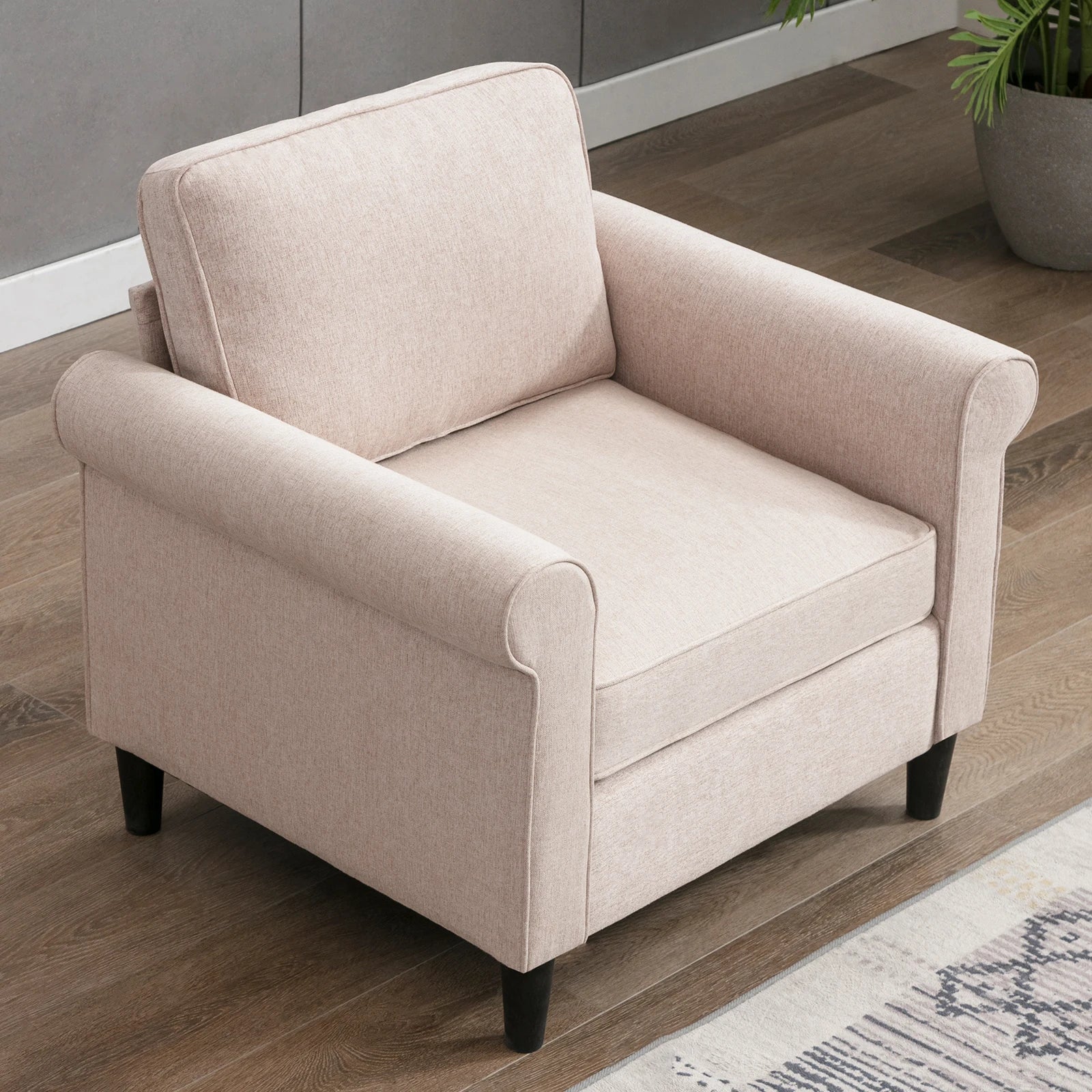 HORGAEO Modern Micro-Fabric Single Sofa with Wooden Frame, Small Upholstered Armchair for Living Room Apartment Office Bedroom