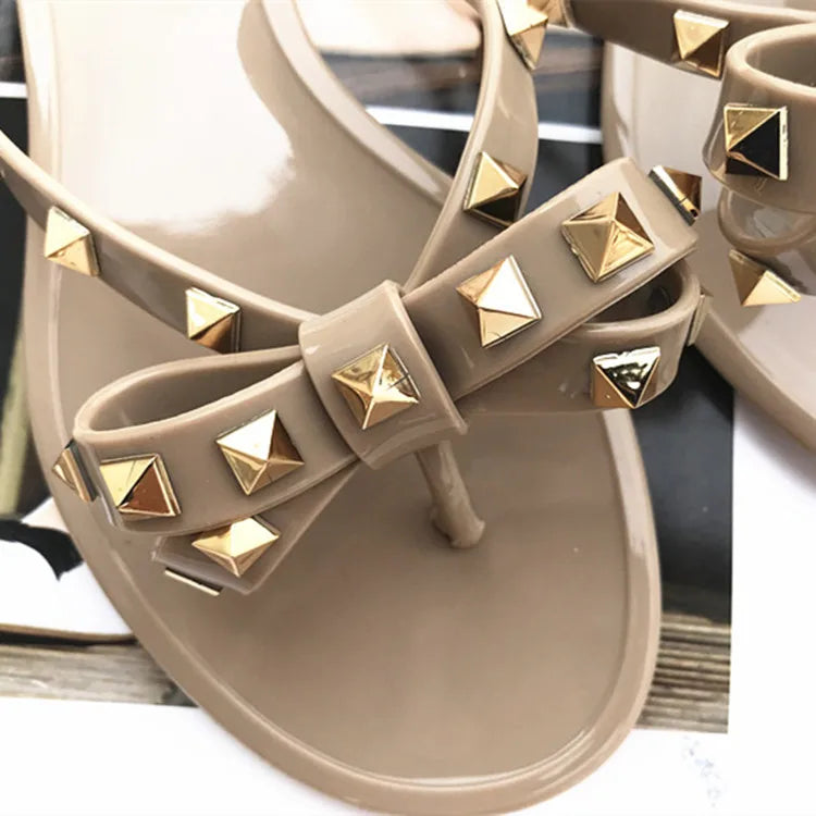 Hot Sale 2022 Fashion Big Size Jelly Ladies Flip Flop Rivet Beach slippers Women Latest Summer Footwear Pvc Footwear for Girl