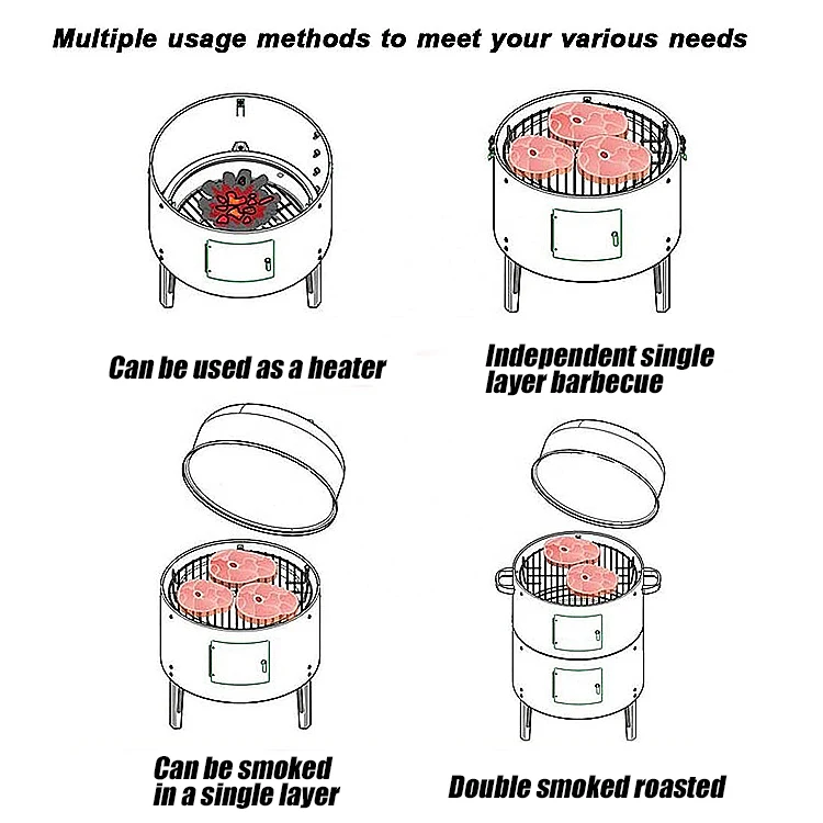 Hot Sale Outdoor Round Black Charcoal Smoke Kitchen Cooking BBQ Grill Garden Supplies