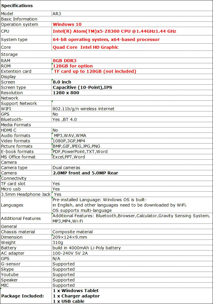 Extend Port: TF card,Micro USB,HDMI-Compatible