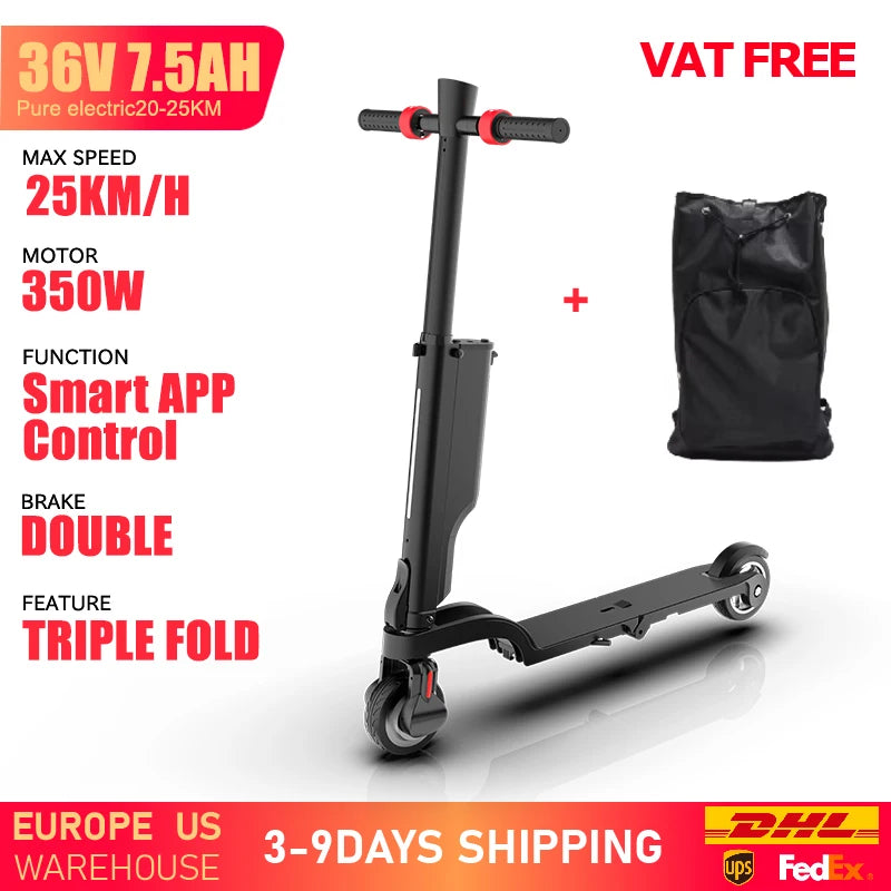 HUANCI X6 350W electric scooter for Adults 36V 7.5A escooter Triple Fold e scooters APP Control Electric Scooters 25km E scooter