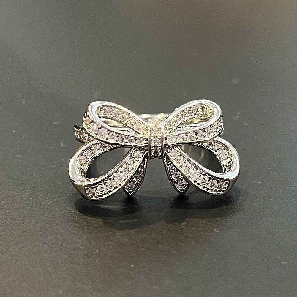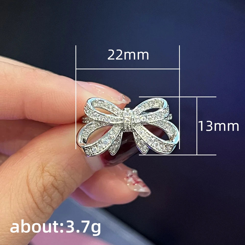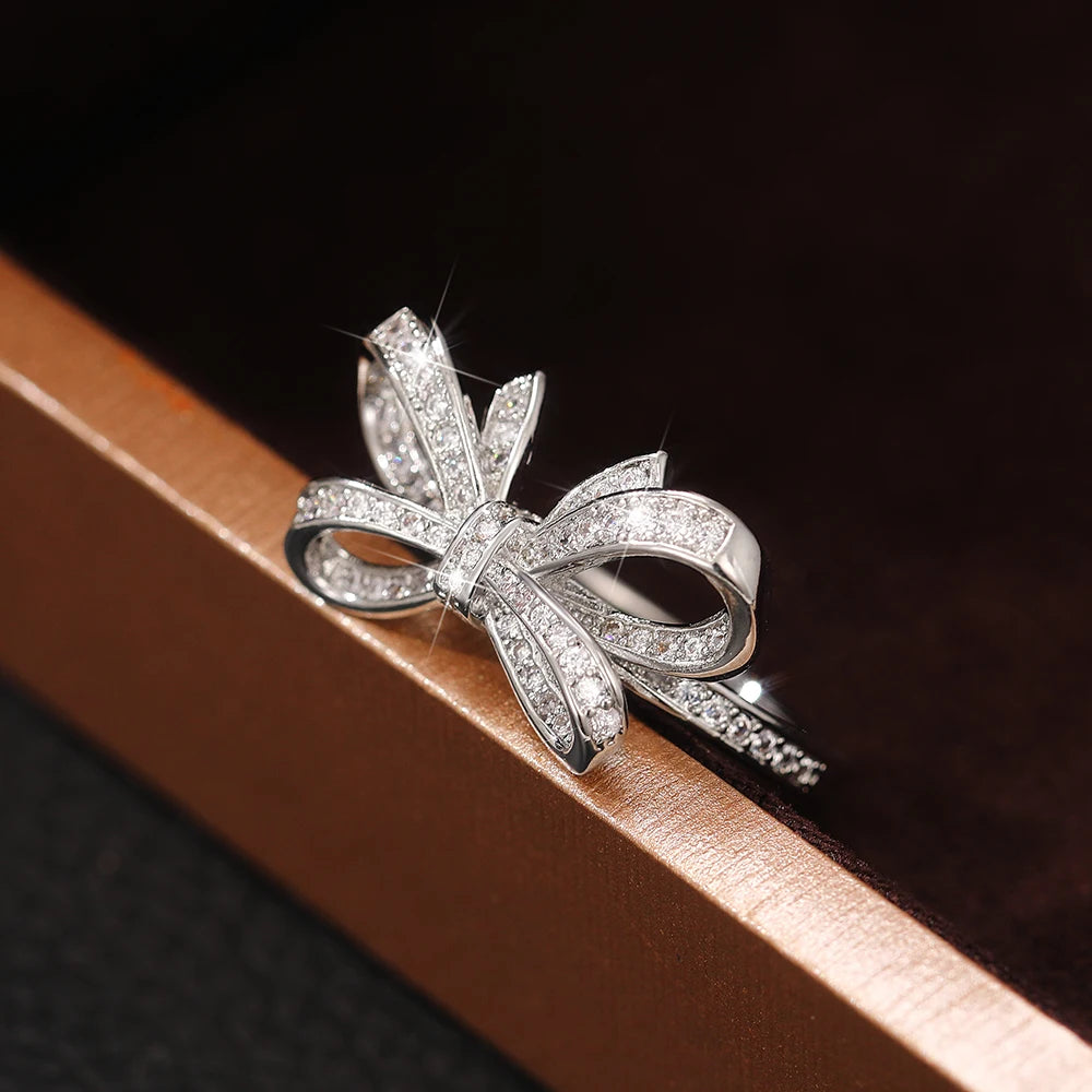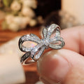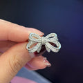 Huitan Bling Bow Rings for Women Luxury Silver Color Fashion Finger Accessories Party Anniversary Gift Romantic Female Jewelry