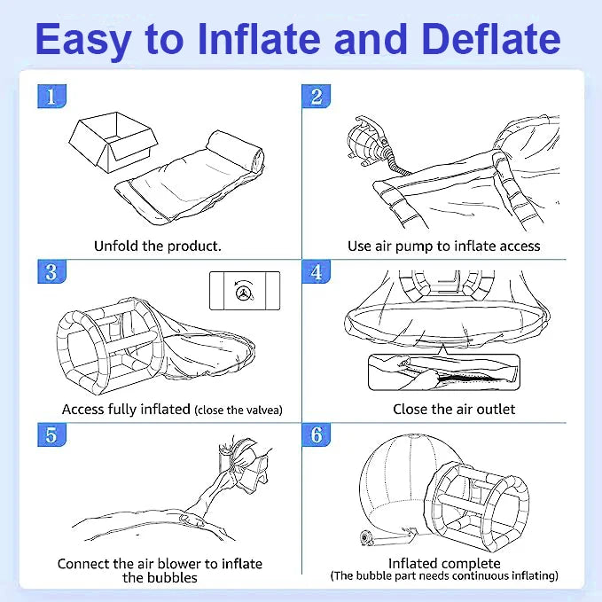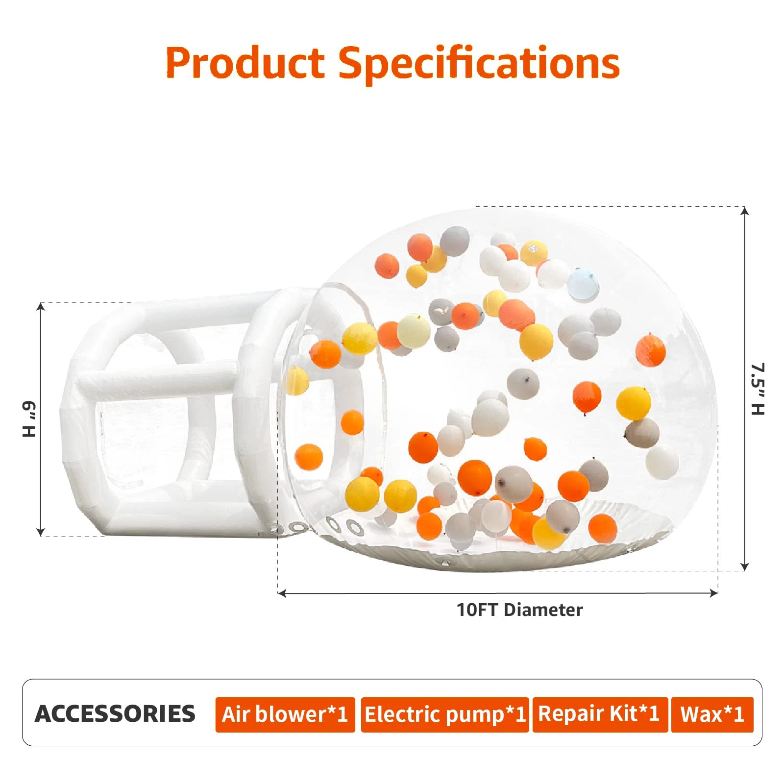 🎈 [ COMMERCIAL GRADE ] Our inflatable bubble house is commercial grade, designed to sustain the wear and tear of events, and manufactured with the highest standards. Very suitable for indoor party or outdoor activities .