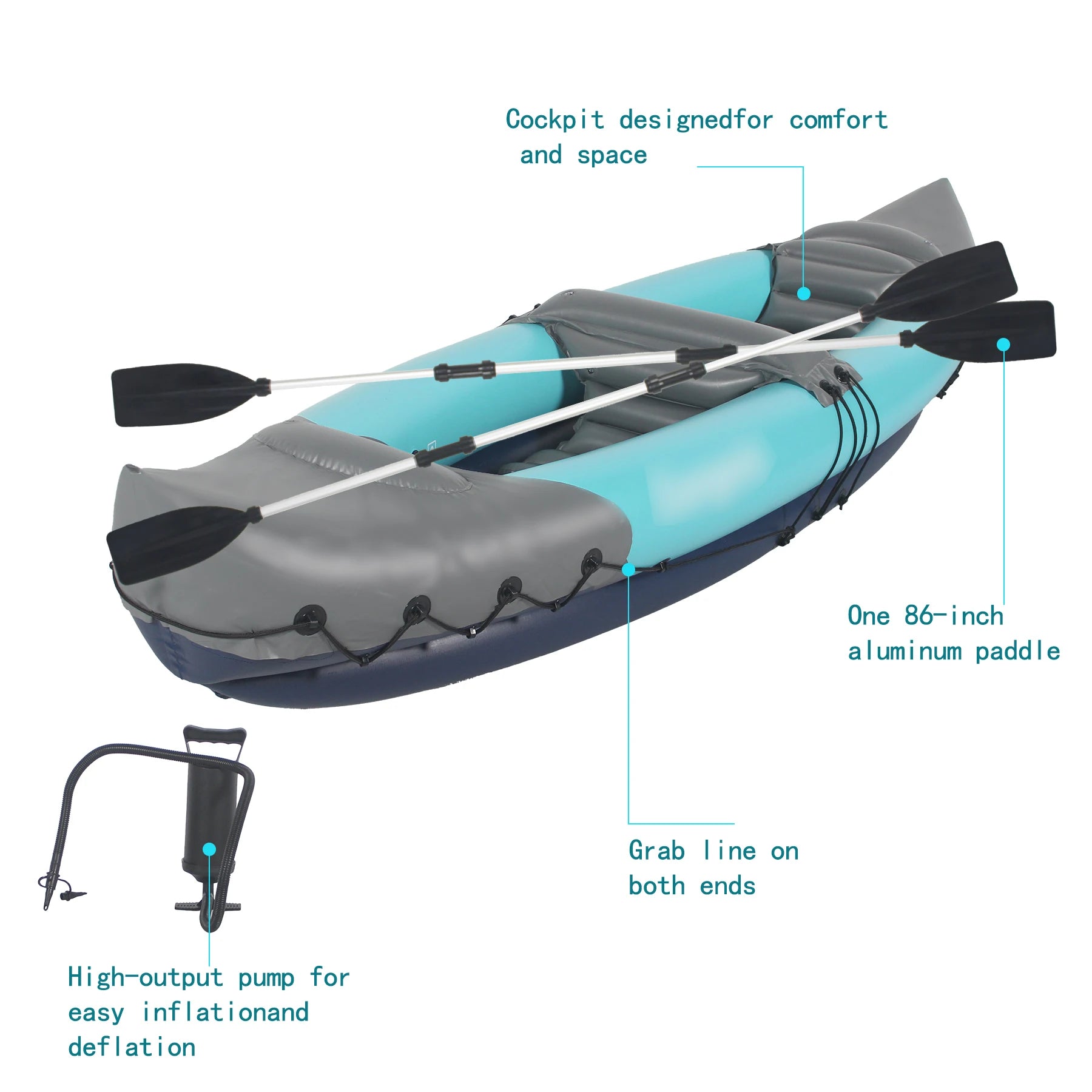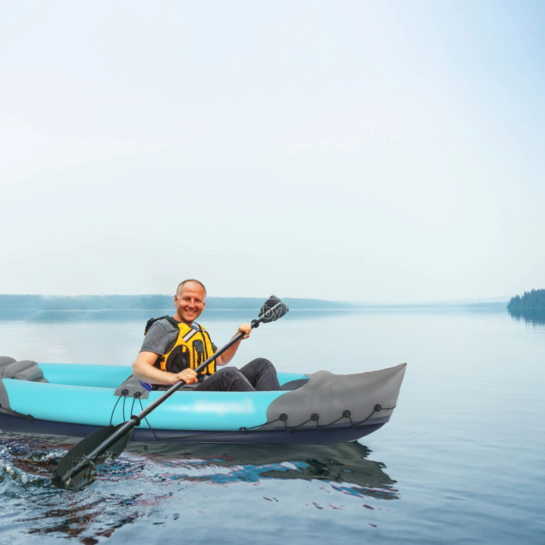 Inflatable Kayak Fishing Boat 2 Person Adult Canoe, with Paddles, Bag, Seats, High-Output Pump, Fin, for Lakes & Rivers