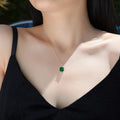 JIUZUAN Green Lab Emerald Pendant Necklace 925 Silver 18K Gold Plated Elegant Jewelry Gift for Women Comes with GRA Certificate