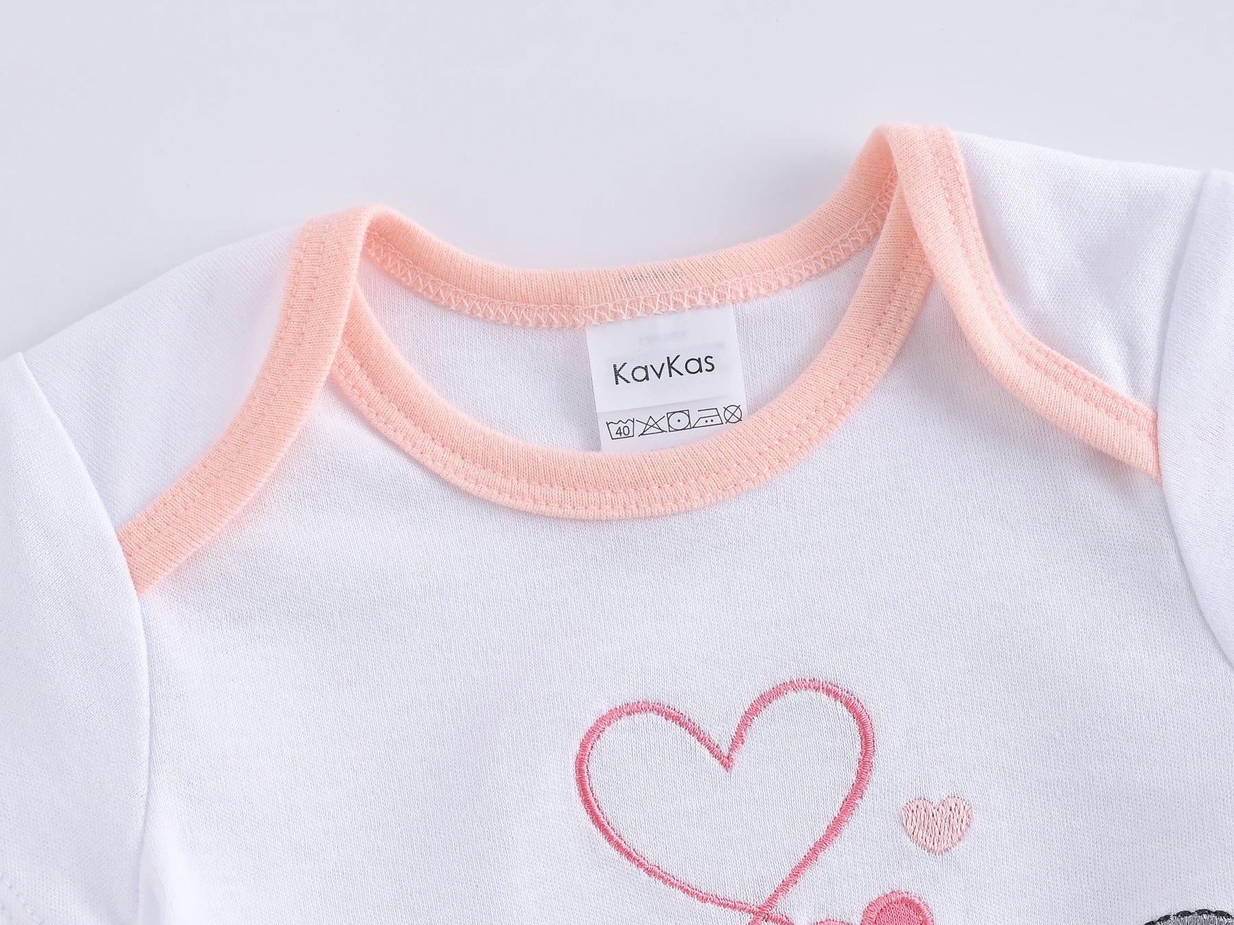 Kavkas 2025 3 Pcs/lot Baby Girls Bodysuit 100% Cotton Short Sleeve Newborn Cartoon Print Clothes 0-12 Months Infant Costume