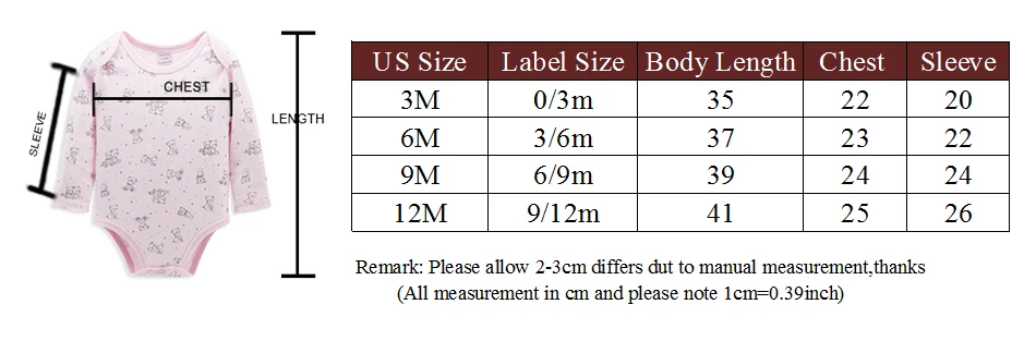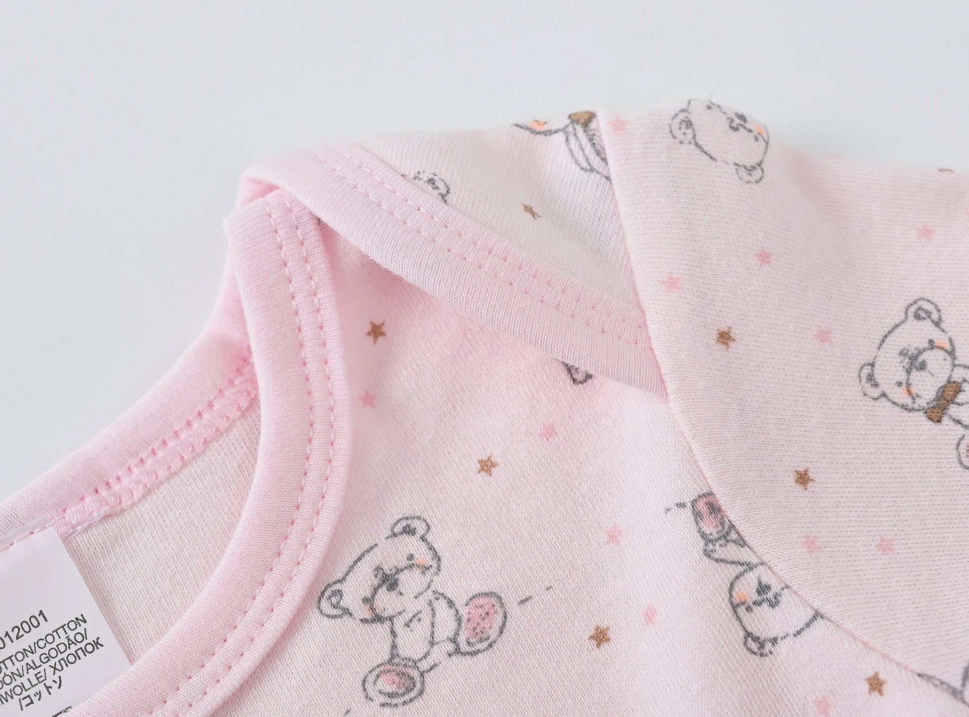 KAVKAS Baby Girls Romper Pink Bear Printing Newborn Clothing 100% Cotton Soft Baby Bodysuit Long Sleeve Clothes