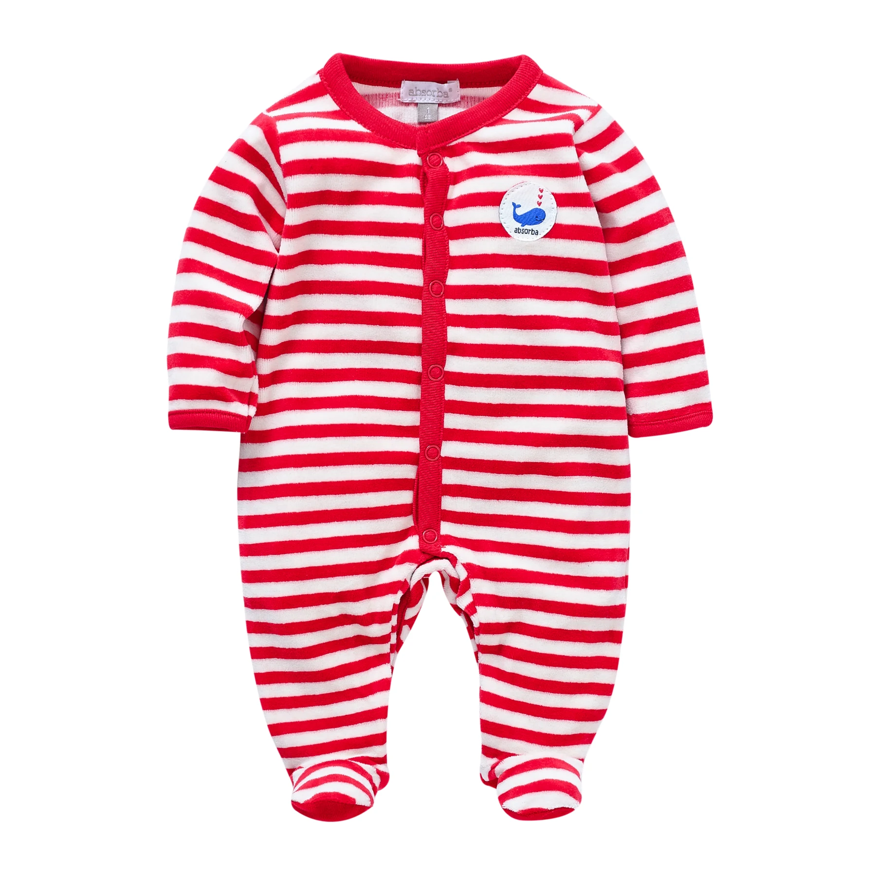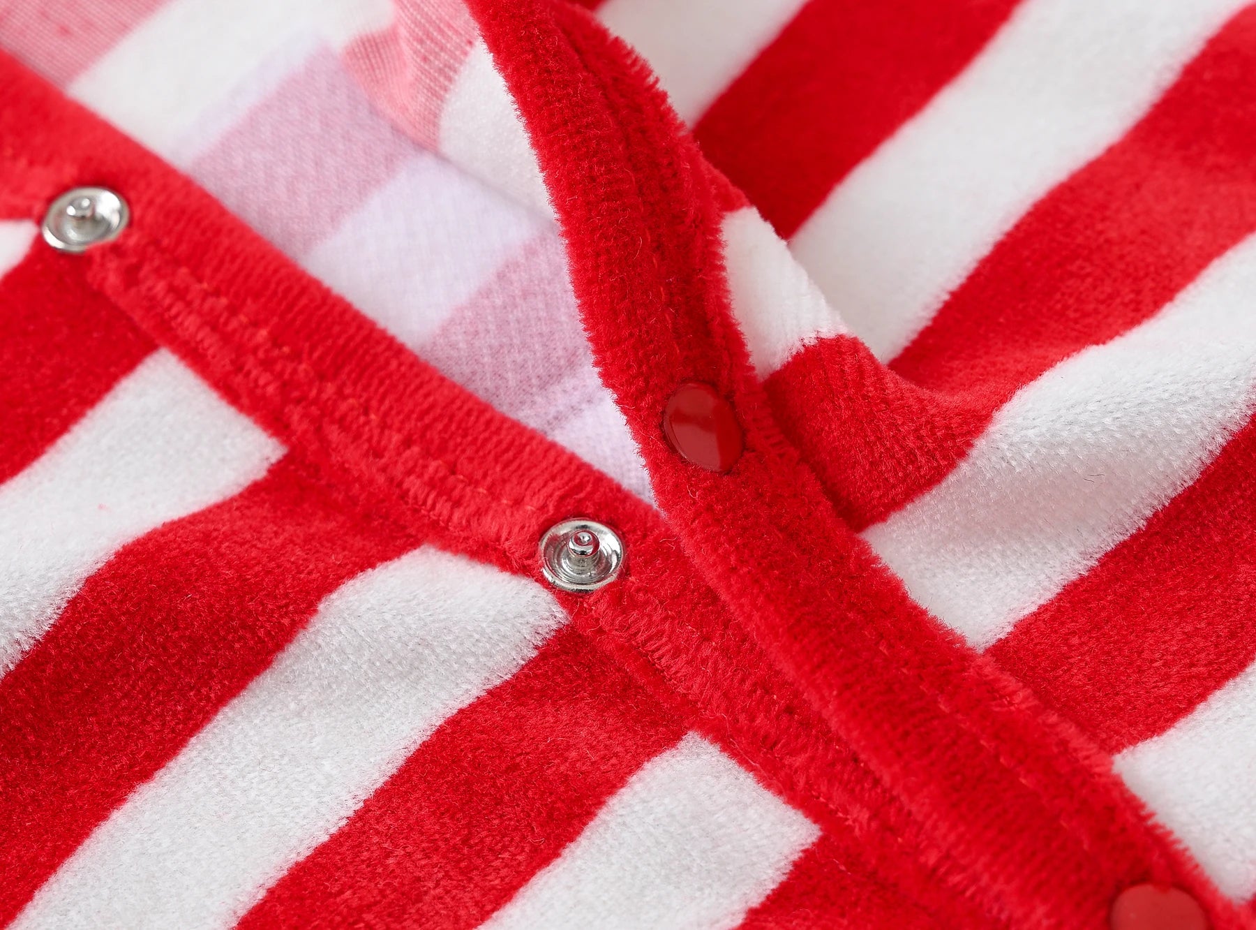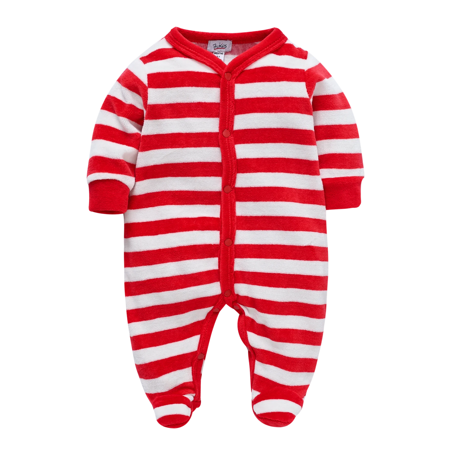 Kavkas Winter Jumpsuit Velour Kids Red Stripe Christmas Clothing Embroidered Jumpsuit Children's Romper Velet Warm Overalls Soft