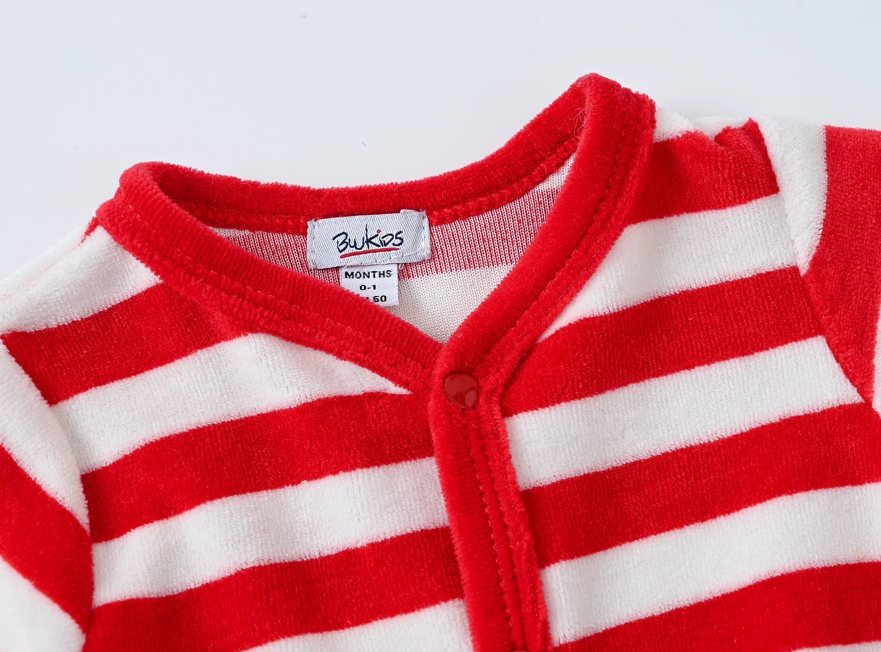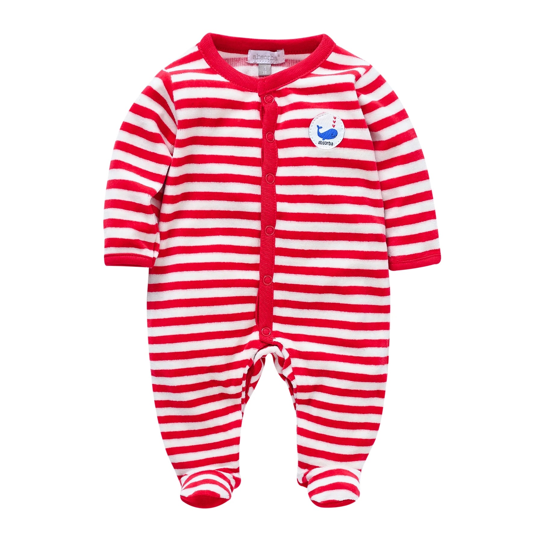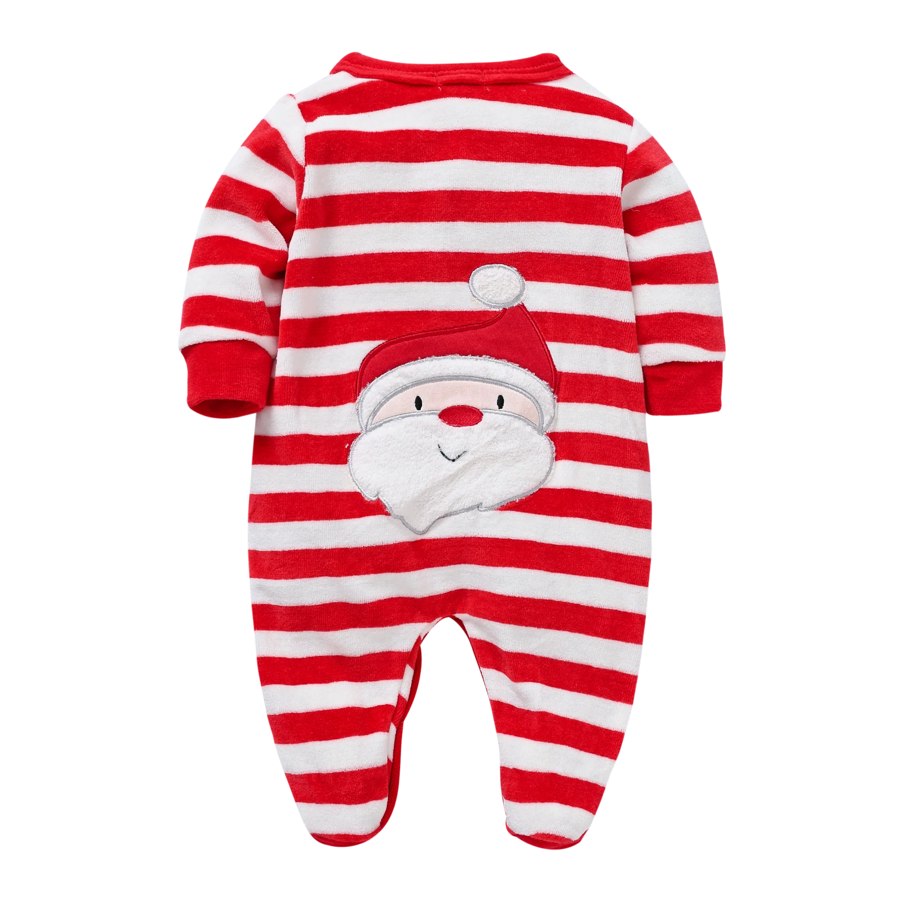 Kavkas Winter Jumpsuit Velour Kids Red Stripe Christmas Clothing Embroidered Jumpsuit Children's Romper Velet Warm Overalls Soft