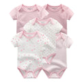 Kiddiezoom 5 Pcs/Lot Four Seasons Fashion Cartoon Short Sleeve Baby Boy Girl Bodysuits Soft 100%Cotton NewbornOnesies