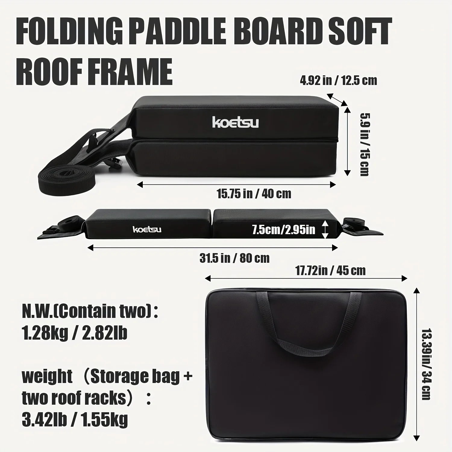 KOETSU Portable Foldable Paddleboard Soft Roof Rack SUP and Hardboard Travel Carrier Folds into a Backpack for Easy Transport