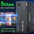 【5Gbps USB 3.0 3 Monitor KVM Switch】The displayport hdmi 3 port kvm switch features 4 USB 3.0 ports for connecting keyboards, mice, USB drives, printers, USB cameras and other USB devices. Data transfer rate up to 5Gbps, which enables rapid file transfer between connected computers to improve work efficiency. 𝙉𝙤𝙩𝙚: Please connect the USB cable from each source to make the USB devices work properly